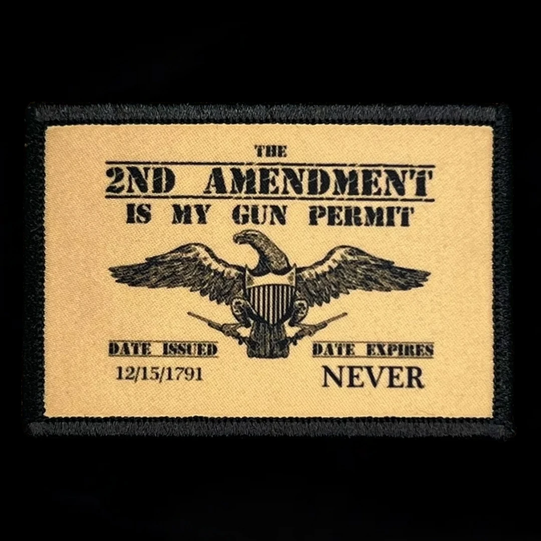 2ª enmienda pistola permiso moral insignia parches táctico brazalete mochila militar gancho y bucle pegatina impresa