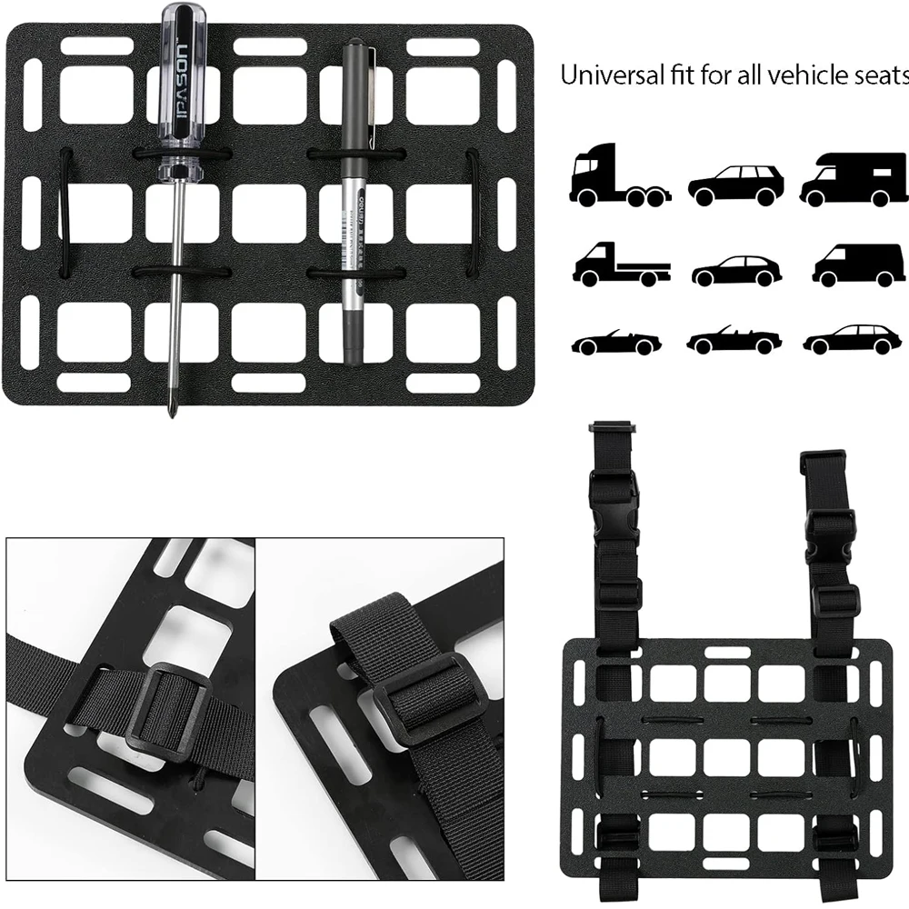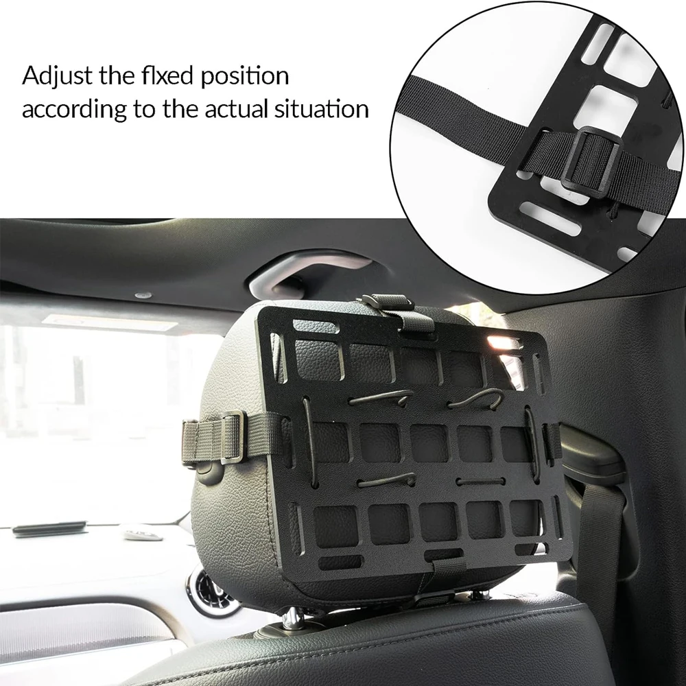 2 piezas de panel Molle rígido Organizador de reposacabezas para respaldo de asiento Molle Organizador de respaldo de asiento táctico Soporte de equipo táctico Placa de polímero