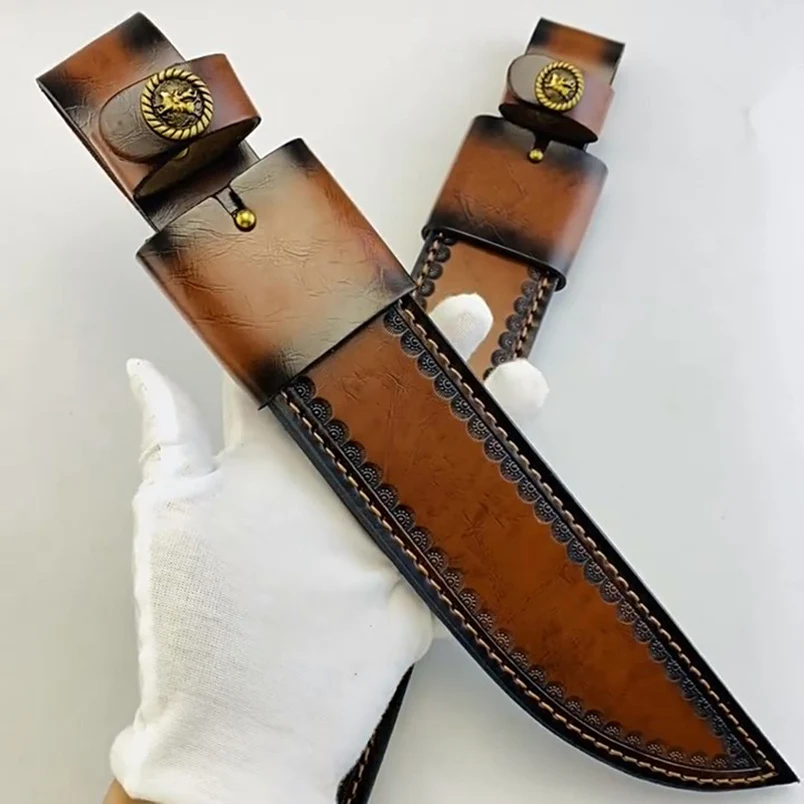 Funda de funda para cuchillo recto grande de cuero de vaca genuino de 2 tamaños
