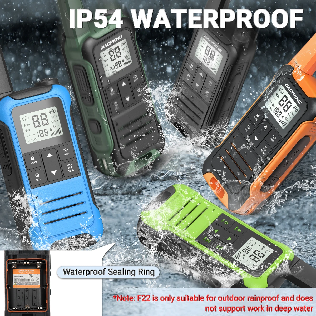 • Impermeable:El walkie talkie es resistente al agua con una clasificación IP45, lo que lo hace adecuado para su uso en todas las condiciones climáticas.