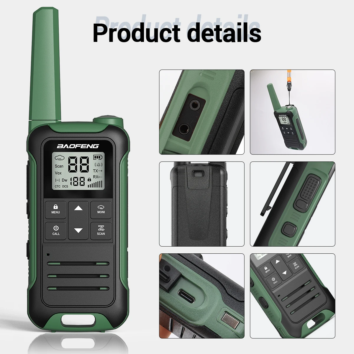• Gama larga:Con un alcance máximo de 3km-5km, este walkie talkie es perfecto para actividades al aire libre como la caza y camping.
