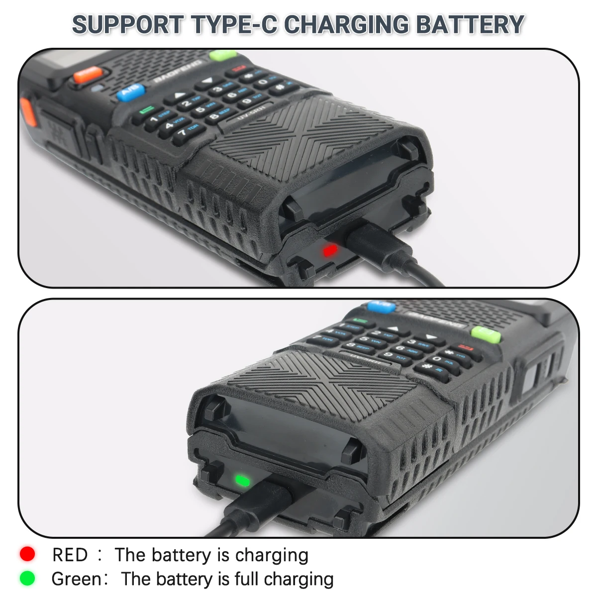Con una batería Baofeng de 3800 mAh, su radioaficionado puede funcionar hasta 3 días. Se puede cargar en cualquier momento y en cualquier lugar con el cargador TYPE-C para garantizar que siempre esté en línea. ¡Carga completamente en cualquier momento y en cualquier lugar!