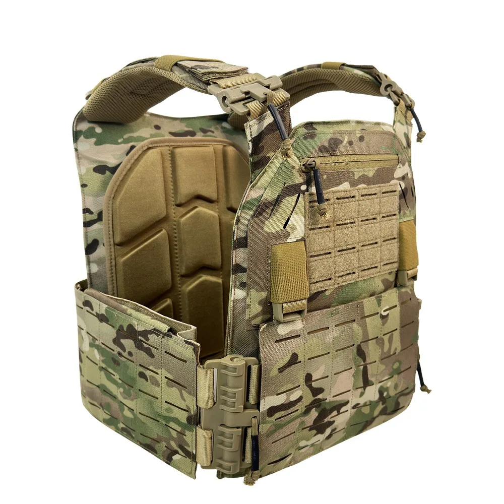 Chaleco táctico 6094, chaleco de transporte de equipo negro de caza al aire libre con corte láser ligero desmontable rápido de alta calidad