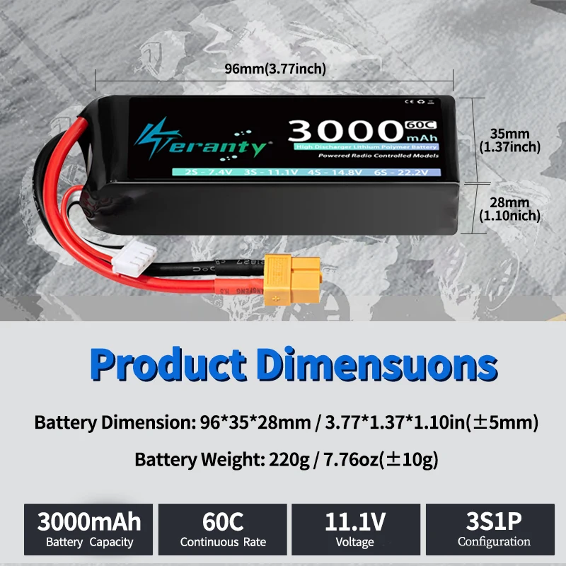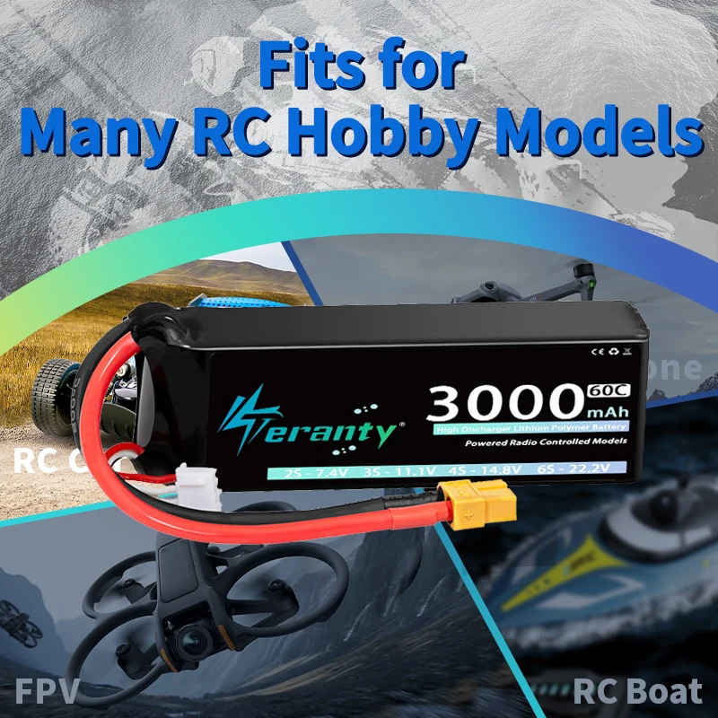 2 uds TERANTÍA 3S 3000mAh 11,1V 60C 80C Lipo batería suave con enchufe T XT60 para FPV Drone camiones barco helicóptero avión