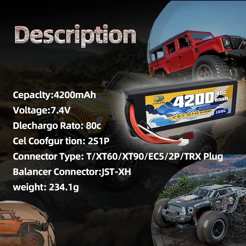 Tipo de conector: enchufe T/XT60/XT90/EC5/EC3/2P/TRX