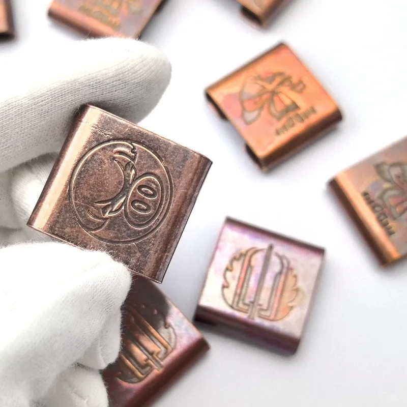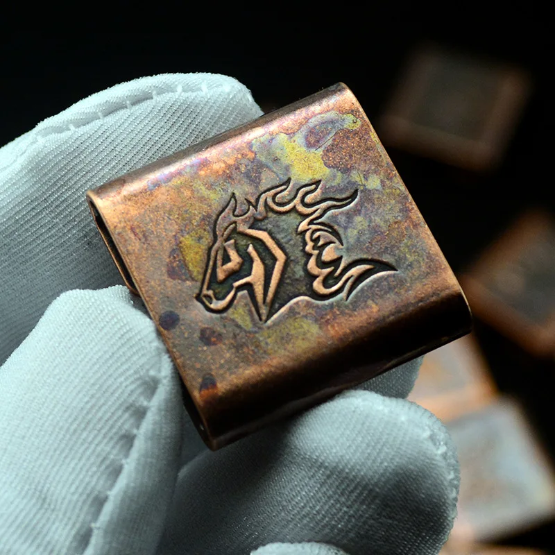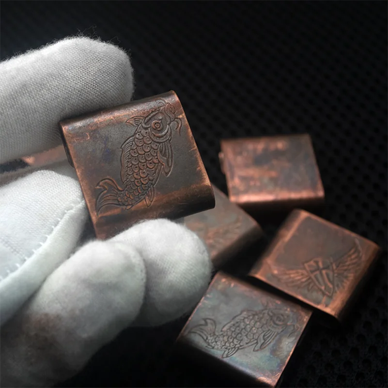 Está hecho de material de cobre rojo y el patrón está estampado de acero.La superficie es de bronce rojo y el color se frota a mano.