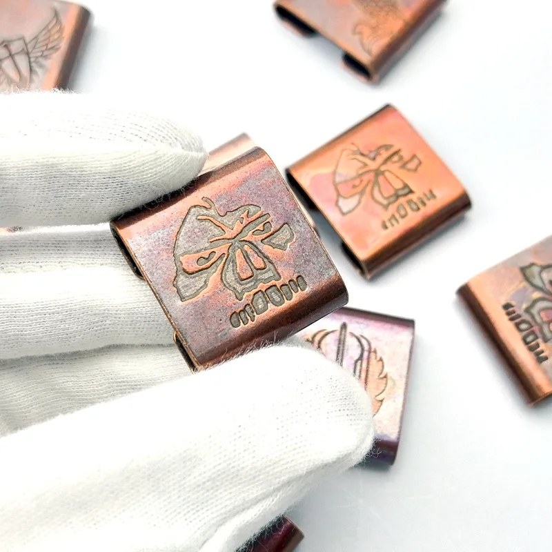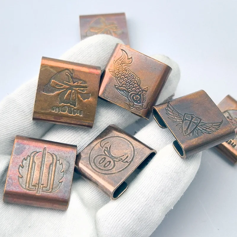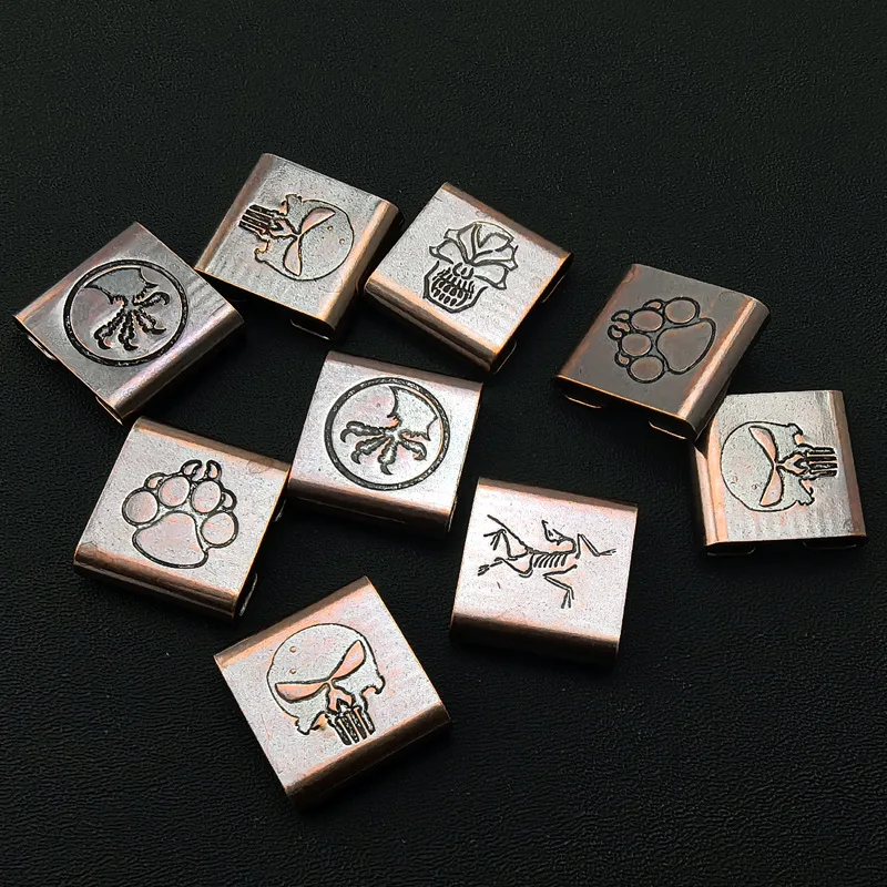 2 unids/lote 13 tipos de logotipo rojo cobre acero llama Molle Clips hebillas EDC accesorios de herramientas