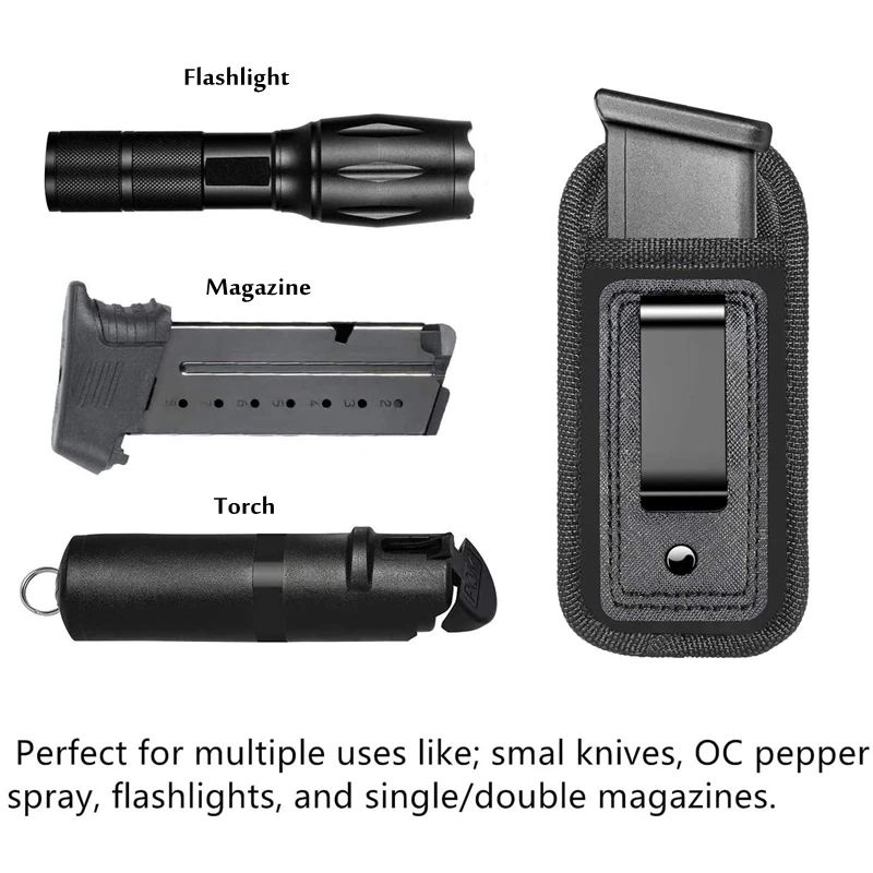 Simplemente colóquelo dentro de su cintura y coloque el clip de metal duradero para descansar sobre el cinturón del pantalón de cualquier tamaño para sujetarlo de forma segura en su lugar.