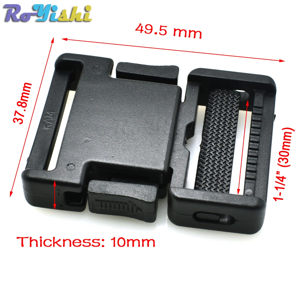2 unids/pack 1-1/4 "hebillas de liberación lateral de plástico para pulseras de supervivencia Paracord correas negras 30mm