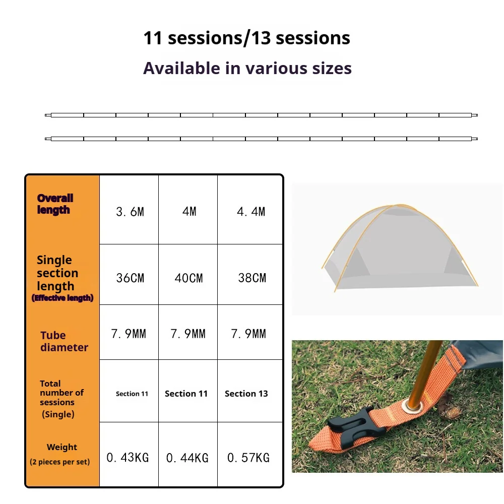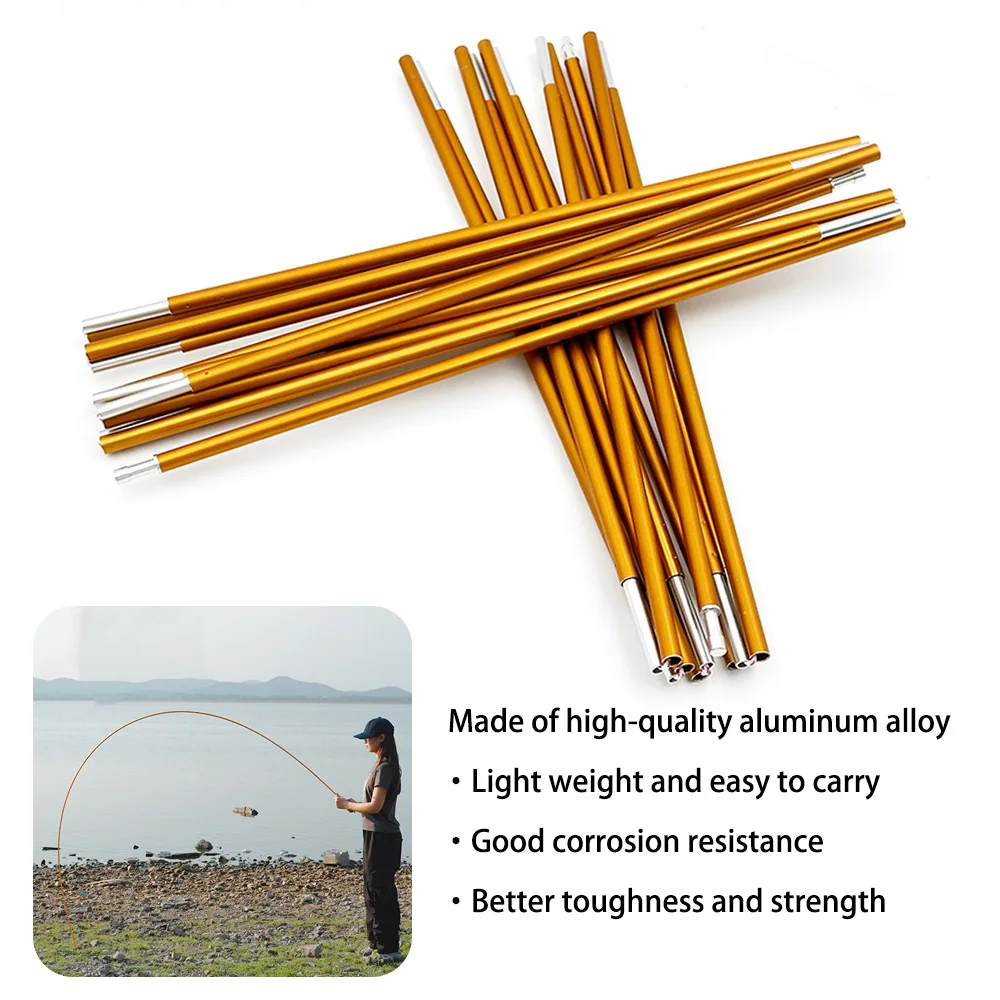 Compacto y liviano: nuestros postes para tienda de campaña están hechos de material de aleación de aluminio de alta calidad, liviano y resistente.Diseño segmentado, apto para motocicleta y mochila para acampar.