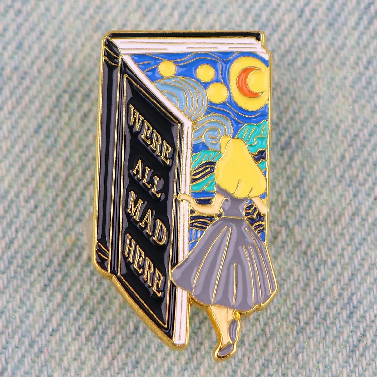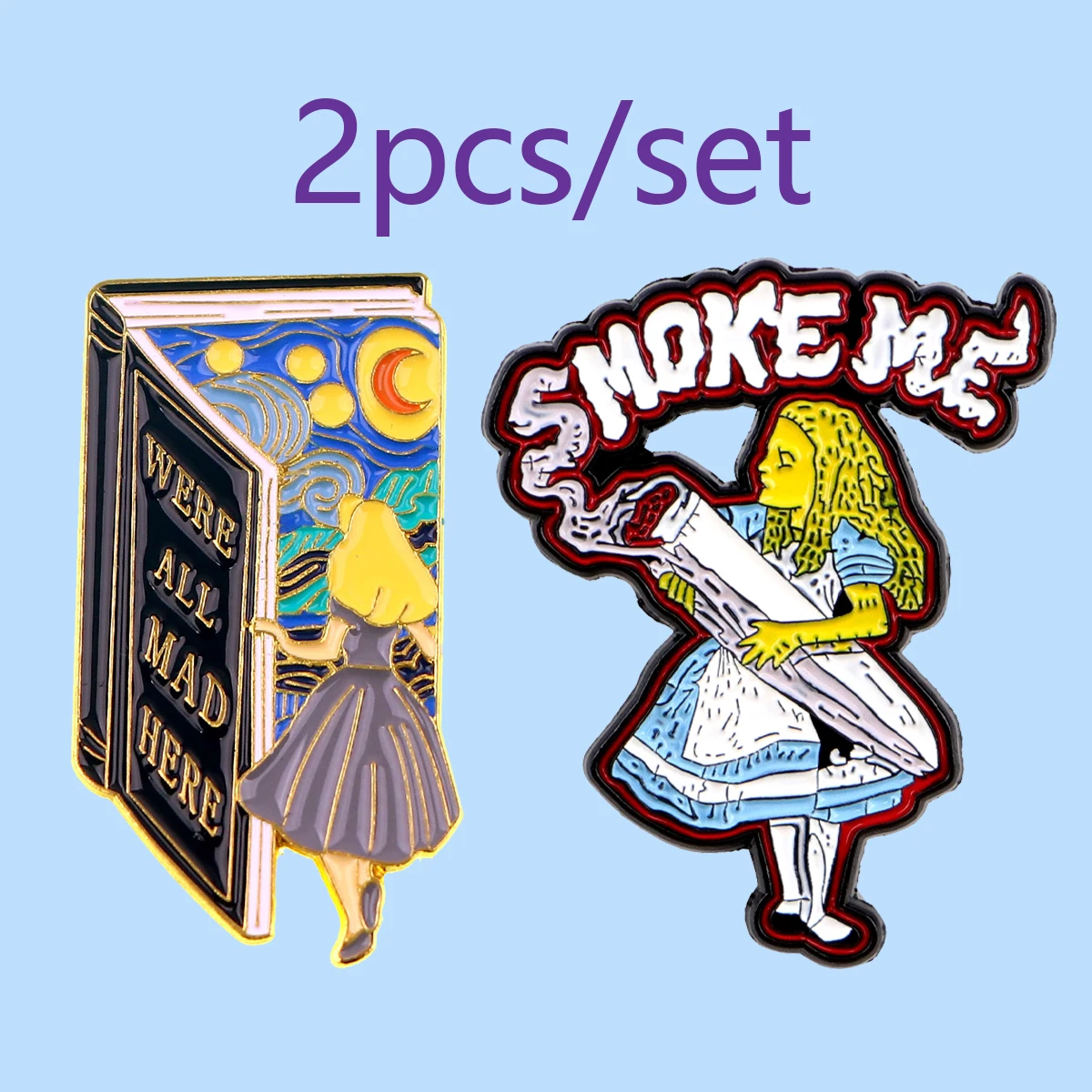 2 unids/set de alfileres esmaltados para niñas, conjunto de broche de dibujos animados, Pin de solapa de Metal con cielo estrellado, insignia, accesorios para mochila, joyería, regalos para amigos