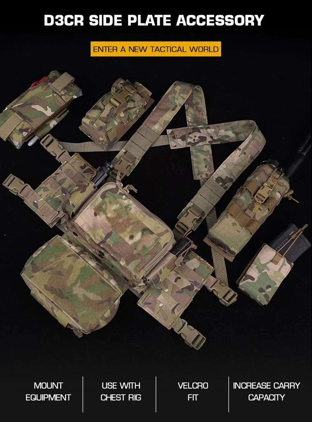 Accesorio de placa lateral para aparejo de pecho Soporte de radioChaleco de caza Molle D3CR MK3 MK4 Hspstyle Panel de entrada lateral Fijación con hebilla en GBolsillo lateral para placa