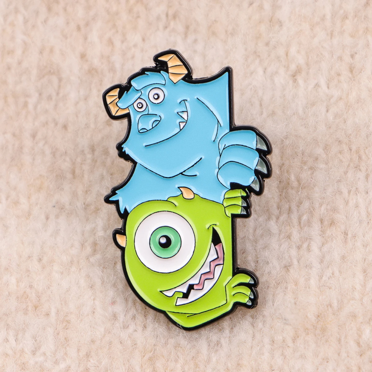 2 unids/set lindo monstruo esmalte Pins broche de dibujos animados conjunto sombrero solapa Pin insignia mochila accesorios joyería regalos para amigos