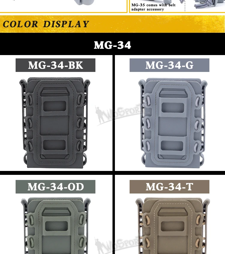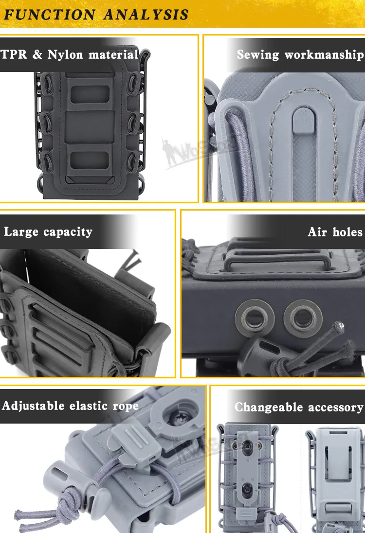 -El frente se puede cargar con tiras de pistola y otros productos de menos de 1,2 pulgadas de ancho, con buena compatibilidad, se recomienda que los jugadores utilicen un cargador WST de 9 mm para una mejor compatibilidad.El lateral son placas de TPR.