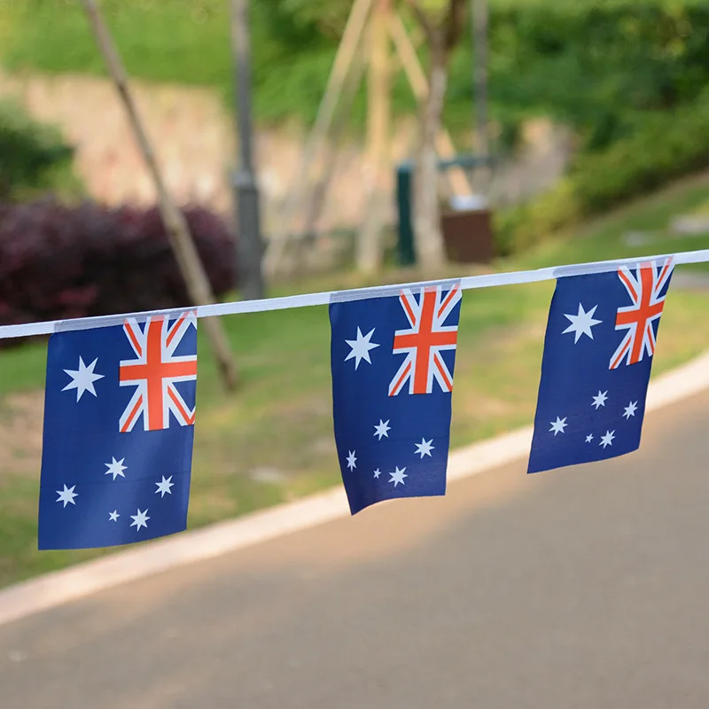 20 banderas una cuerda Banderas de Australia 14*21 cm Banderas australianas Fiesta de vacaciones Banderas decoradas para interiores y exteriores