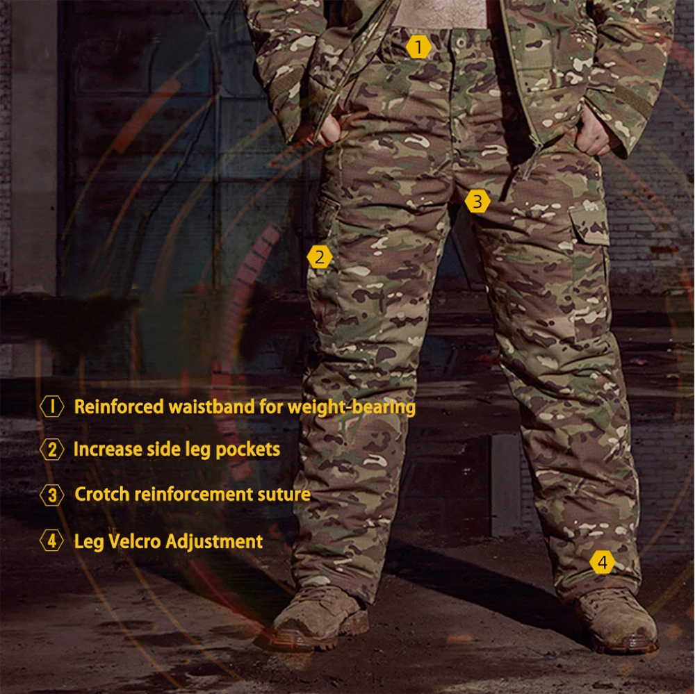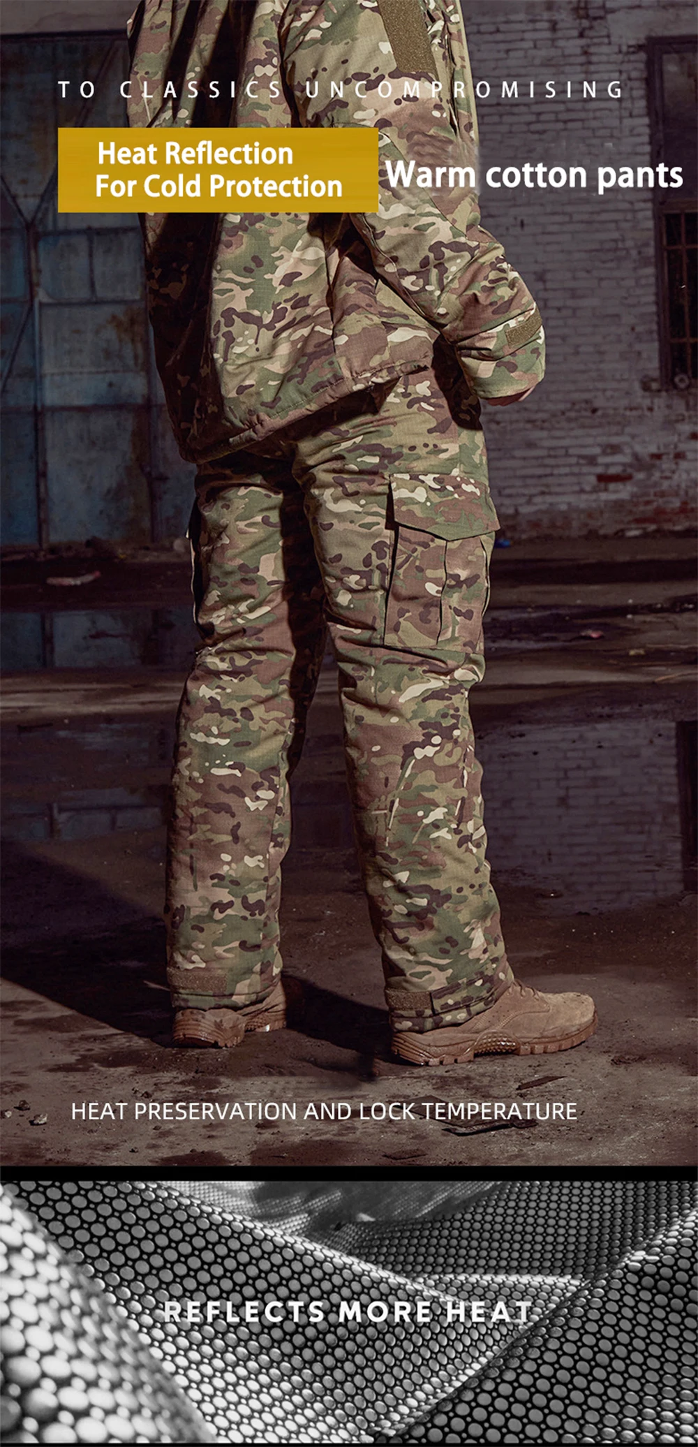 –20 ℃ Pantalones tácticos de invierno, pantalones reflectantes con calefacción de camuflaje, ropa cálida para exteriores para hombres, pantalones gruesos impermeables a prueba de frío para caza