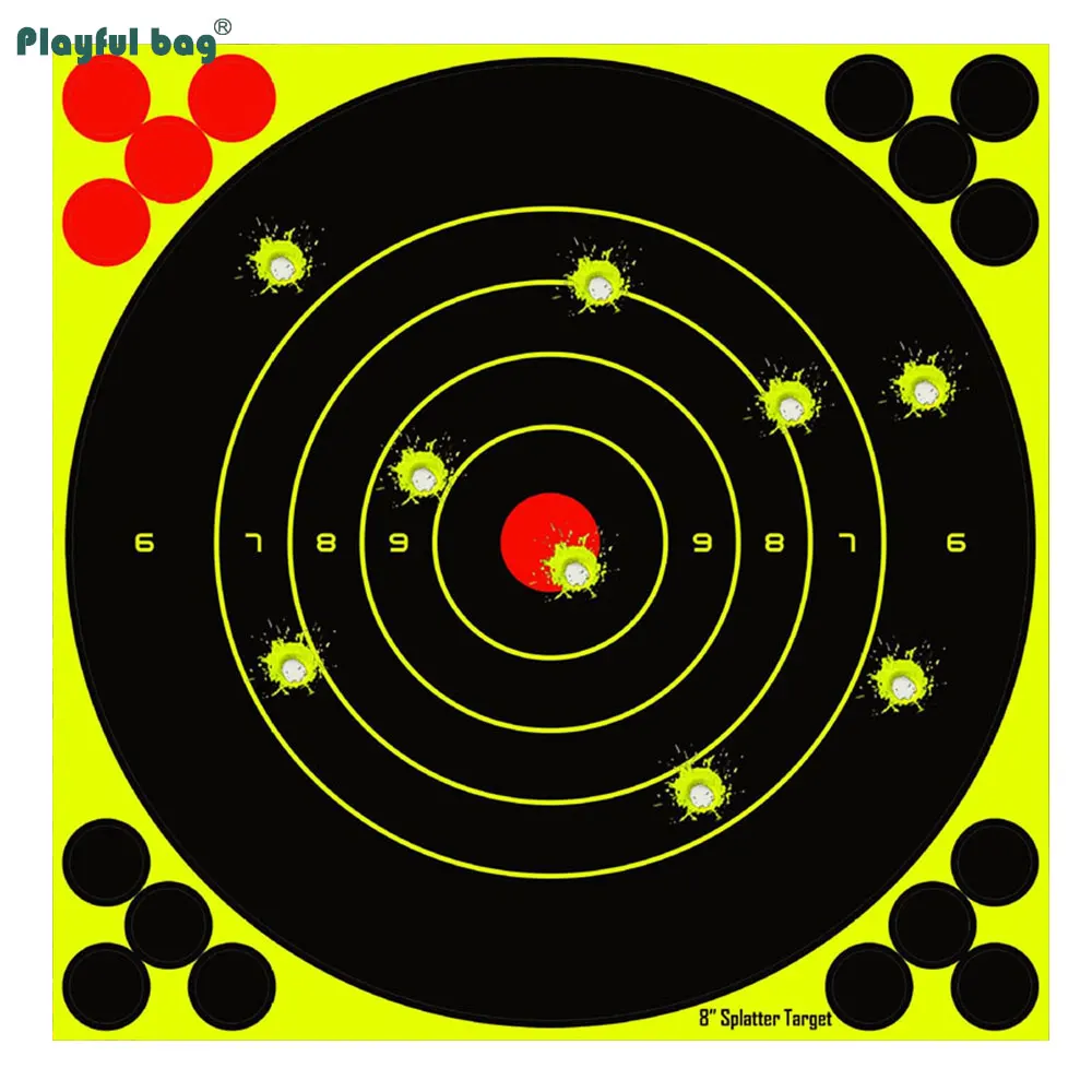 20 piezas pegatinas de objetivo de salpicaduras de 8x8 pulgadas, papel de práctica de destino, accesorios de entrenamiento de tiro autoadhesivos AQB174