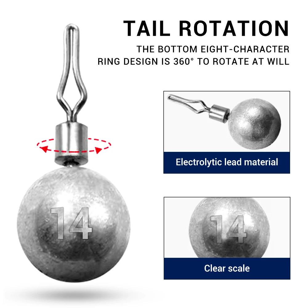 3. 【Cabezal giratorio inteligente】 Cada peso de tiro caído está equipado con un clip de línea que puede girar 360°, lo que puede evitar eficazmente que el hilo de pescar se enrede y puede atravesar suavemente obstáculos como plantas acuáticas y piedras para garantizar una buena experiencia de pesca.