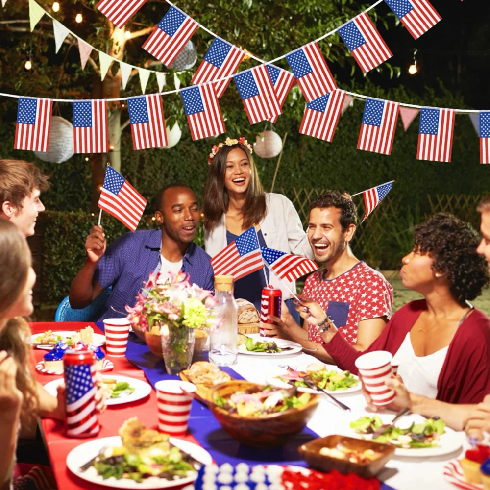 20 unids/set 14cm x 21cm bandera de EE. UU. América bandera de cuerda banderines americanos bandera de cuerda pequeña