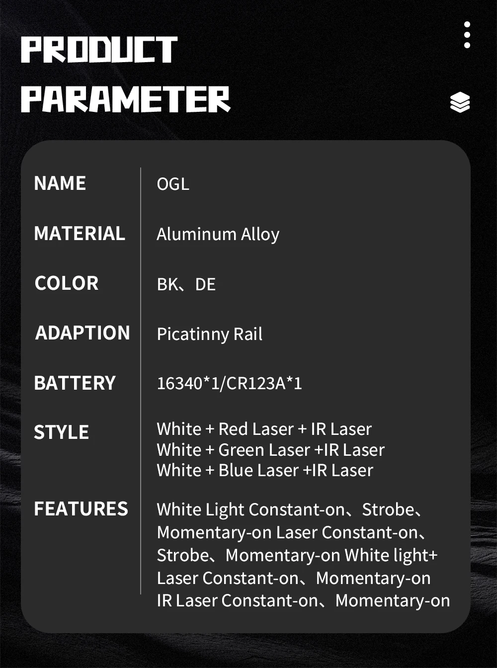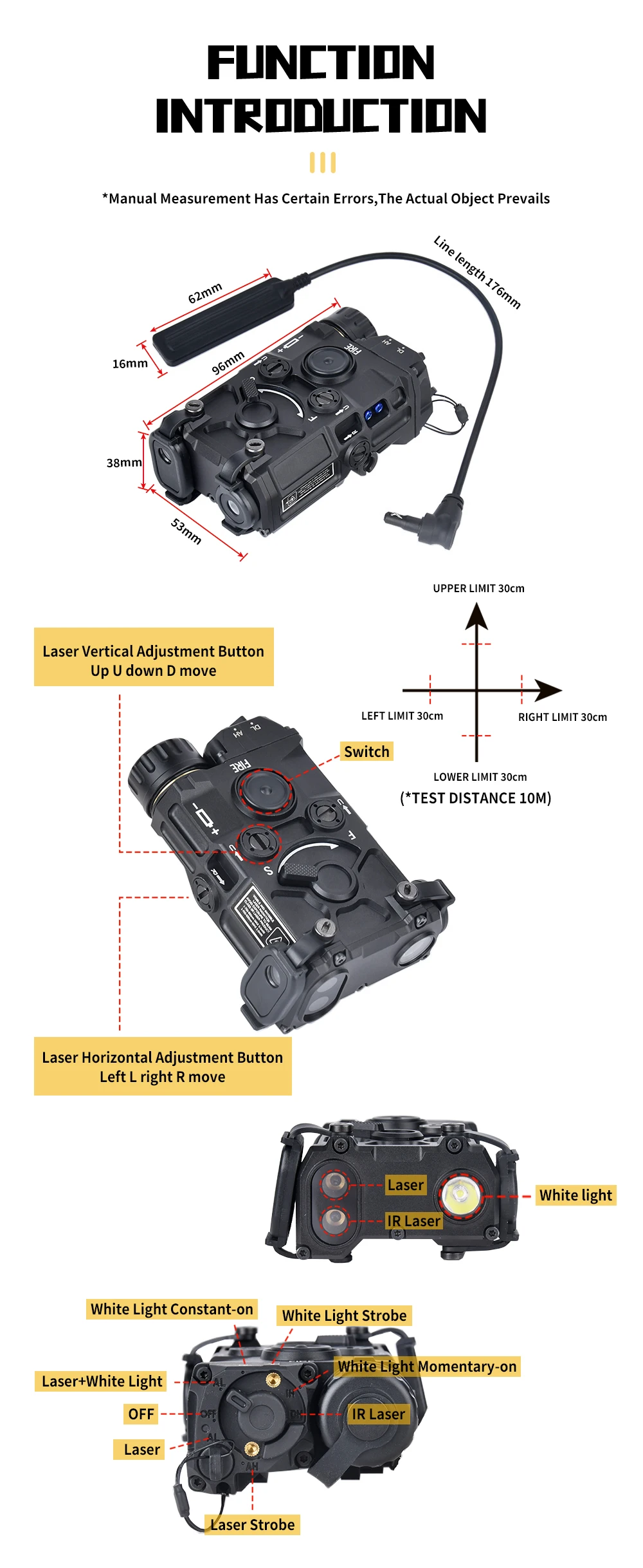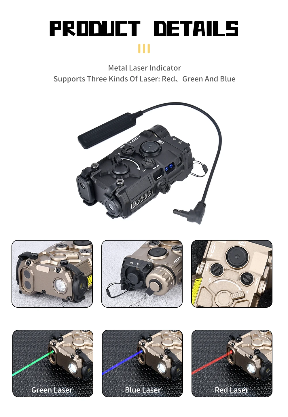 Función: luz estroboscópica de puntería roja, verde, azul, IR