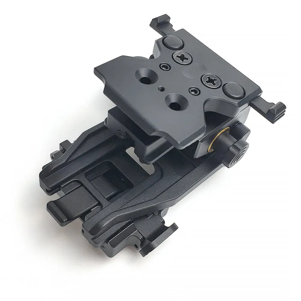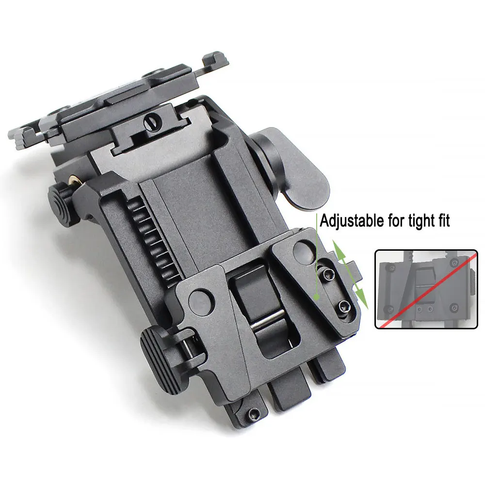 4.La palanca de liberación intuitiva del dispositivo NVG permite la extracción rápida del dispositivo NVG pero está protegida por rieles de ajuste hacia adelante/atrás.