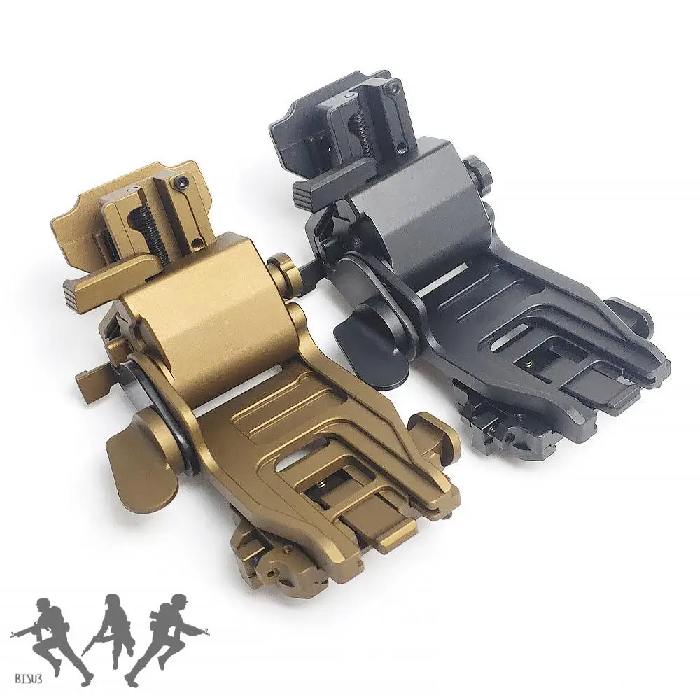 1.La fuerza para superar el almacenamiento elimina las posibilidades de lesiones en el cuello (si el NVG tiene golpes o impactos, el soporte abatible de perfil bajo se doblará y bloqueará en posición vertical protegiendo el NVG y el operador).