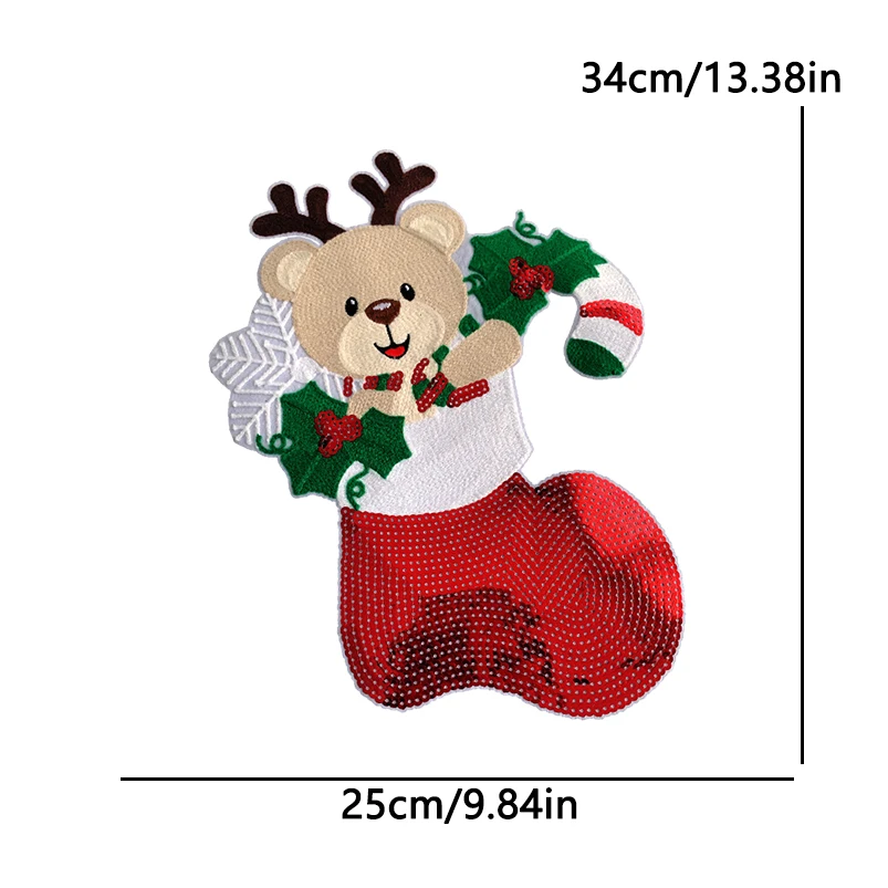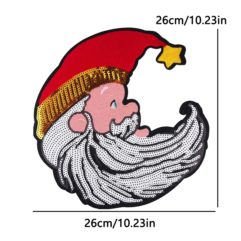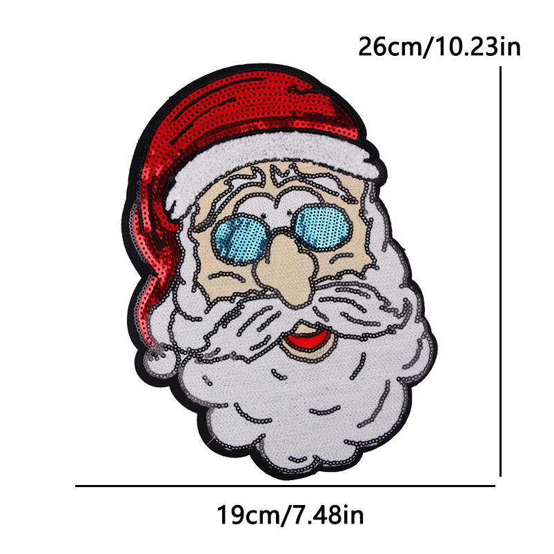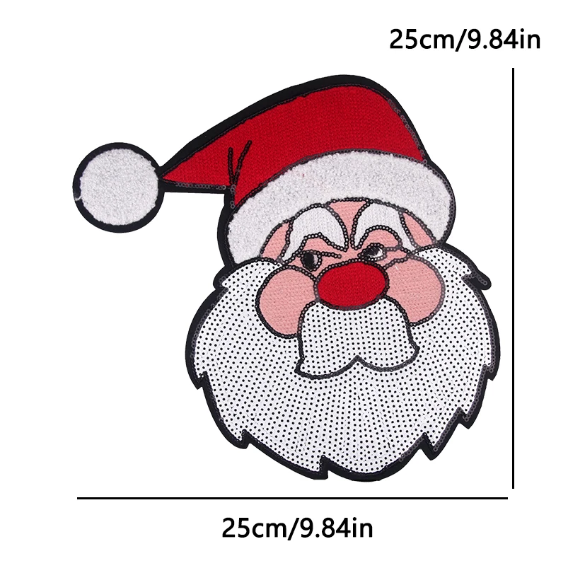 Parches grandes de lentejuelas para árbol de Navidad, regalos de Navidad, parche para planchar para decoraciones de ropa, apliques DIY de Papá Noel, 2025
