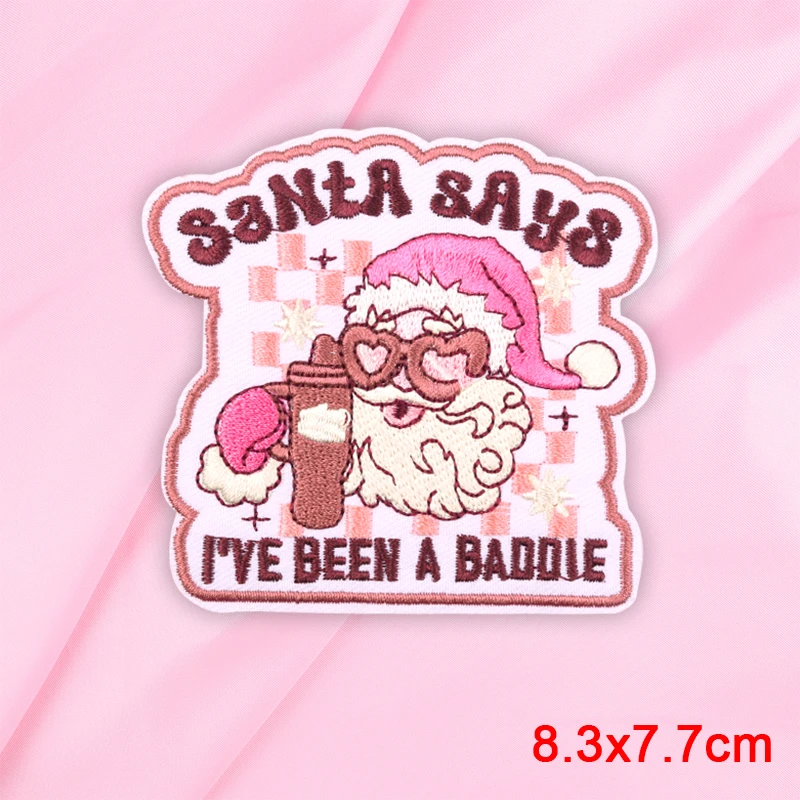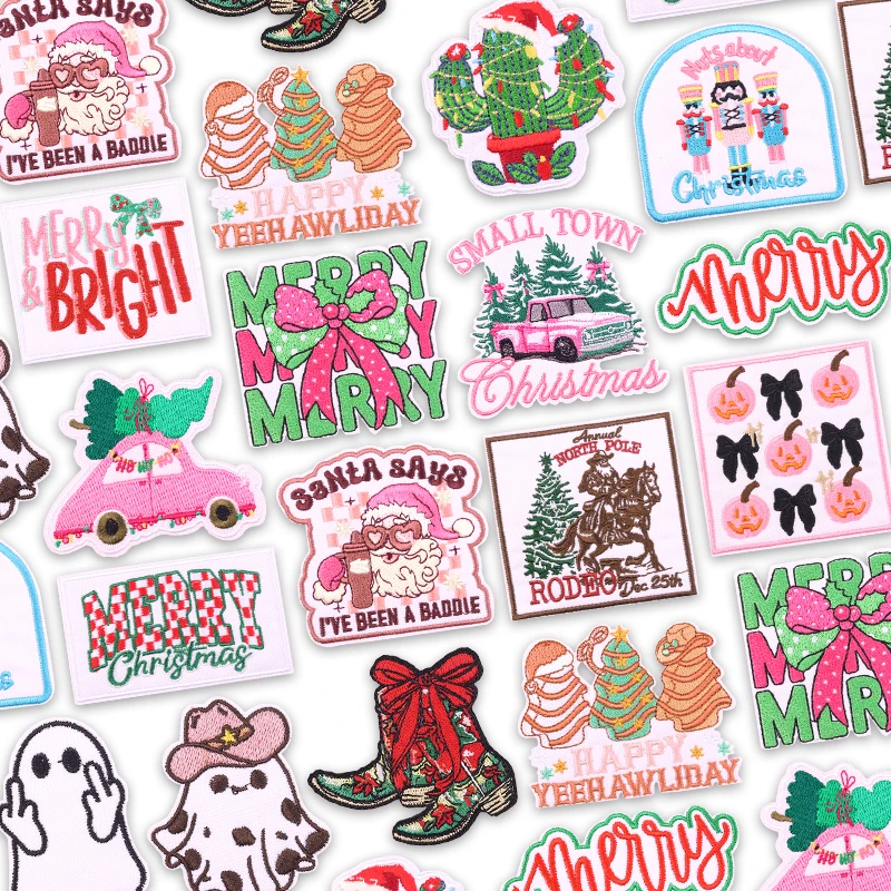 Parches de hierro para ropa, Feliz Navidad, regalos de Navidad bordados brillantes, parche para decoraciones de Carnaval, Papá Noel, 2025