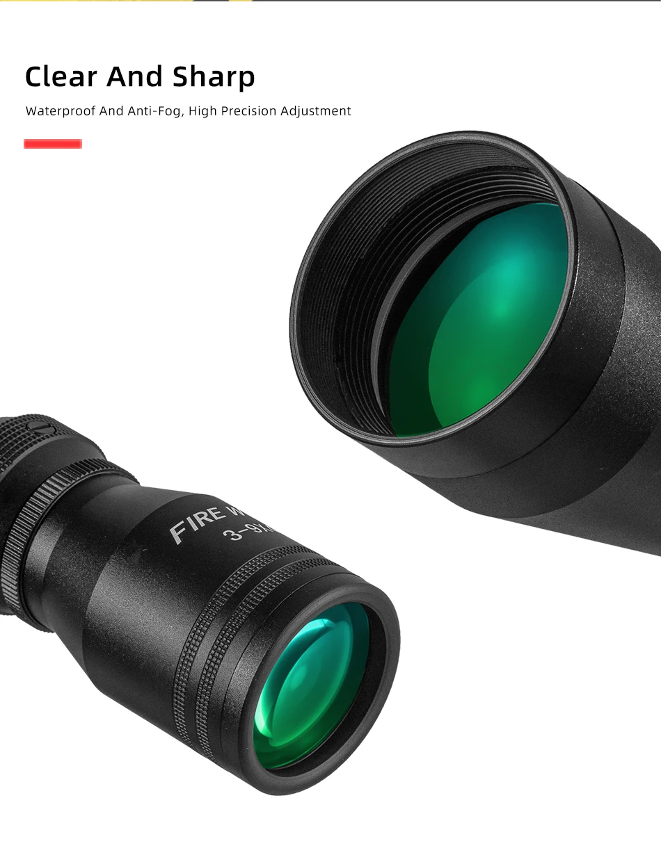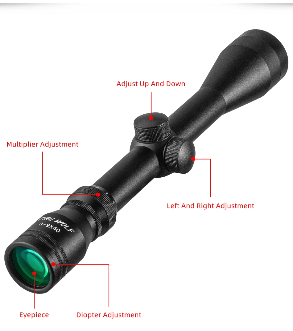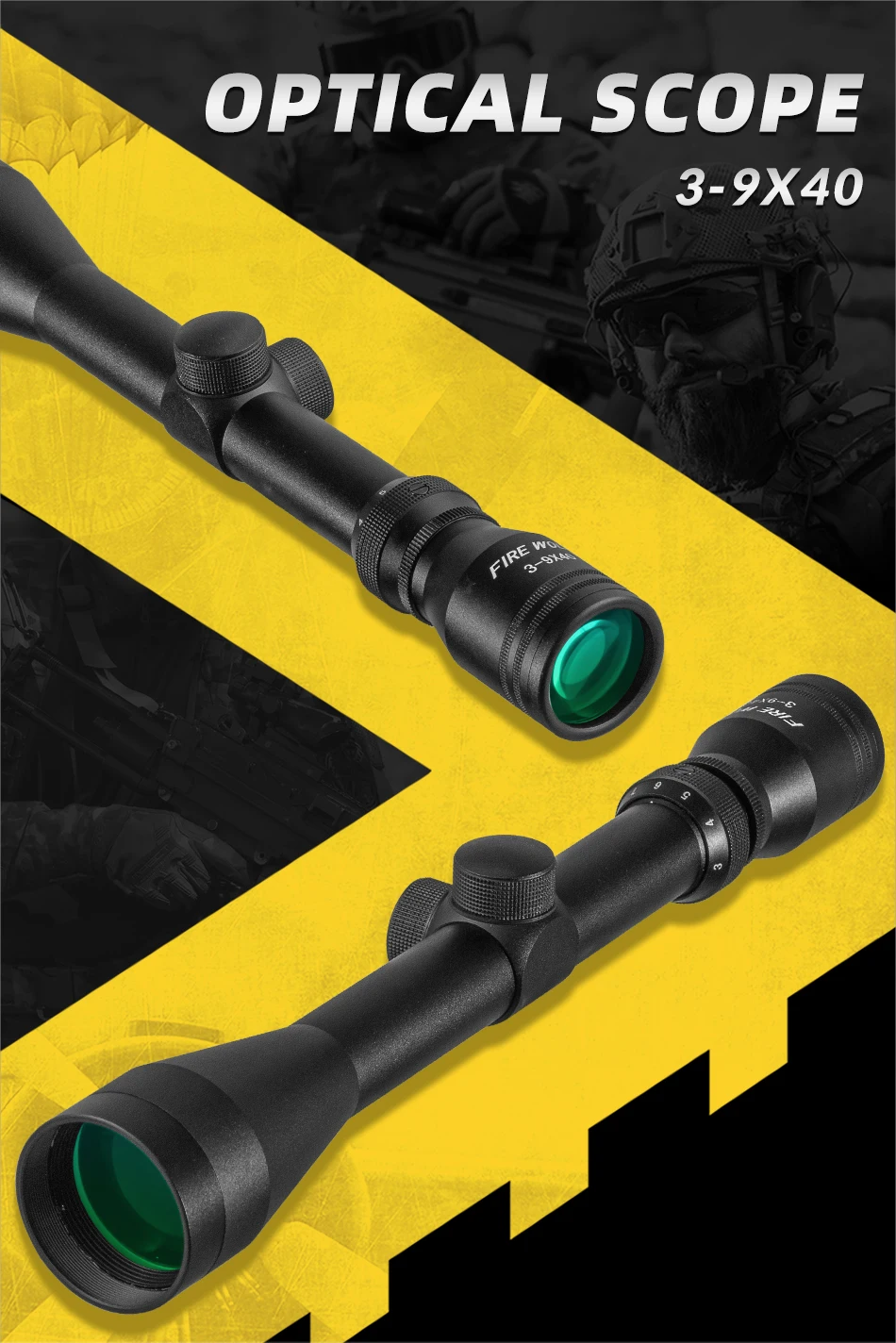2025 FIRE WOLF 3-9x40 caza Mil Dot Rifle de aire pistola óptica al aire libre francotirador ciervo caza alcance soportes de riel
