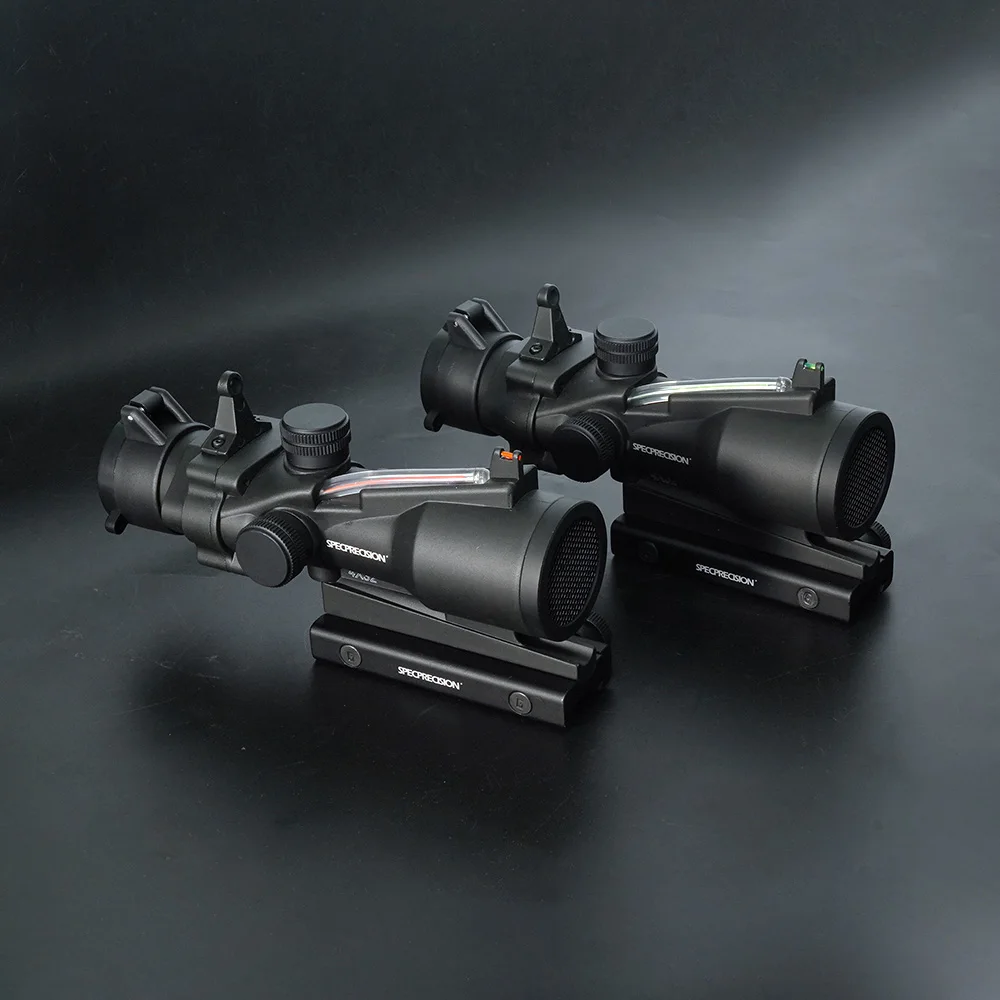 También viene equipado con mira de hierro, tapa abatible para ocular y flash kill.En particular, a diferencia de los visores de fibra óptica de otras marcas, el SPECPRECISION cuenta con un ocular de enfoque rápido con configuraciones de dioptrías ajustables, lo que lo hace particularmente amigable para los tiradores miopes: algo de visores de otras marcas no pueden ofrecer.