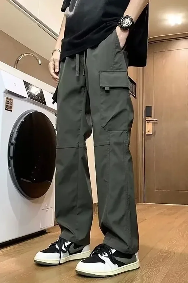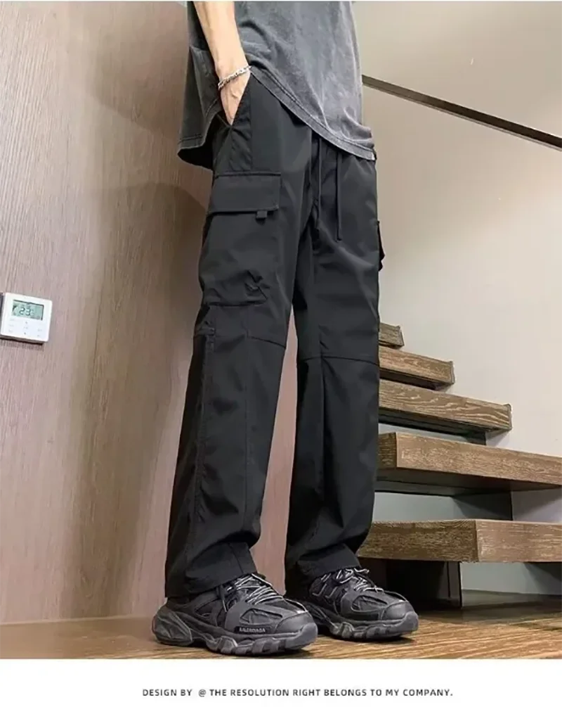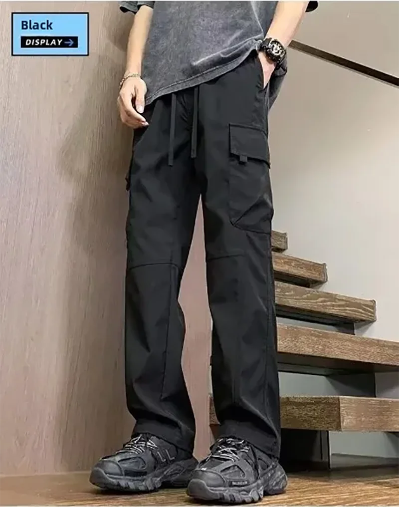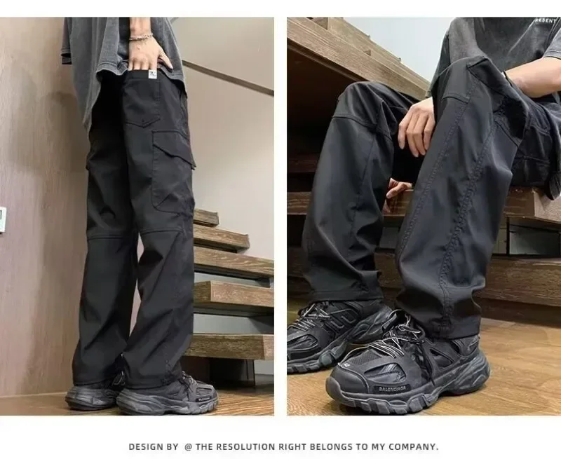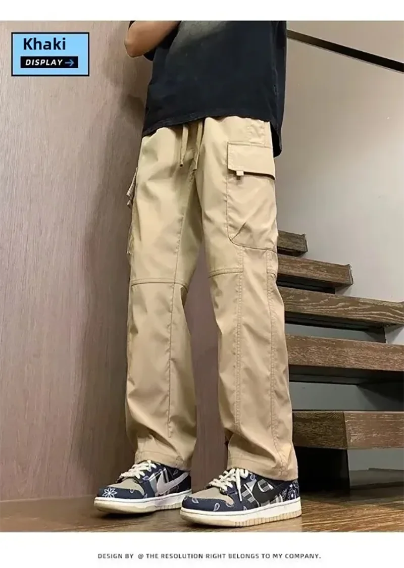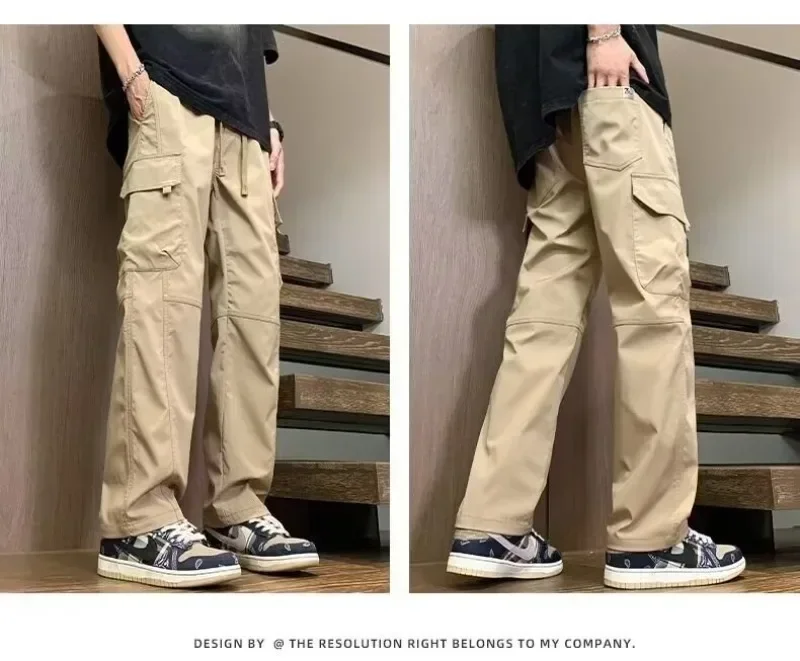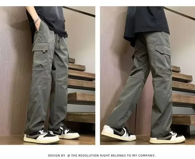 2025 pantalones de calle informales para hombre, pantalones Cargo rectos a la moda, pantalones de chándal resistentes al desgaste con múltiples bolsillos para verano, 2/1 Uds.