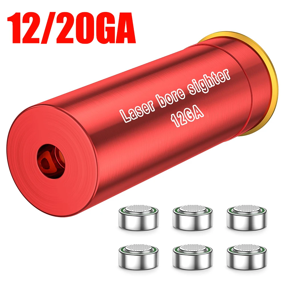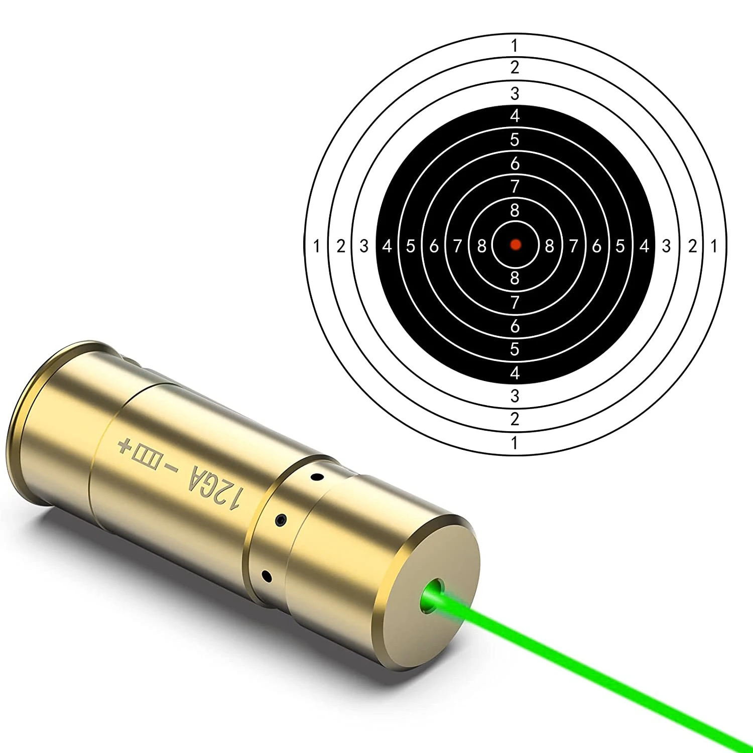 20GA 12GA Bore Sight Calibrador láser verde Boresighter con 3 juegos de baterías Entrenamiento de incendio seco Bullet Shotgun Entrenamiento Zeroing
