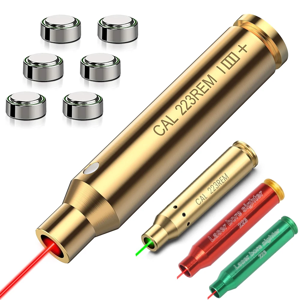 .223Rem Red Dot Laser Boresighter Cartucho de 5,56 mm Vista de orificio láser con baterías para escopeta de caza Pistola Ajuste de alcance Accesorios Airsoft