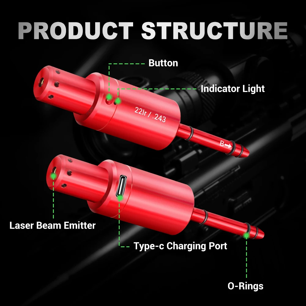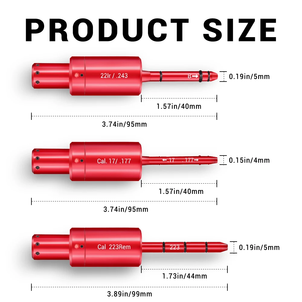Es dos en uno diseñado tanto para cartuchos de entrenamiento como para funciones boresighter.Alternarás fácilmente entre los dos modos.Y comience el entrenamiento del fuego seco después de configurar la mira.(Se adapta principalmente a cilindros de acero sin dispositivos mu zzle)