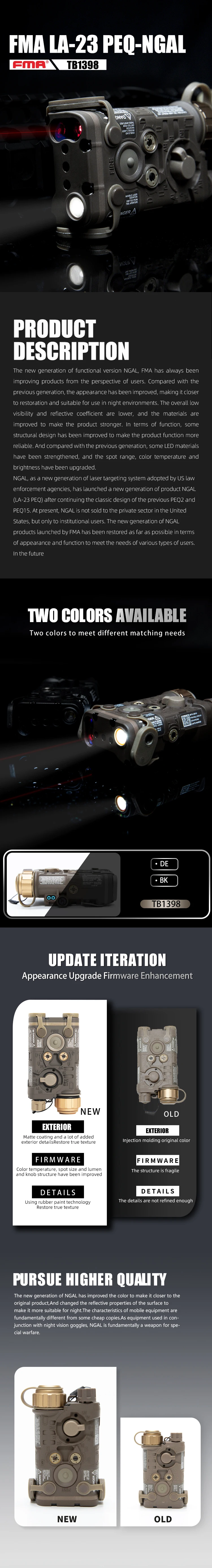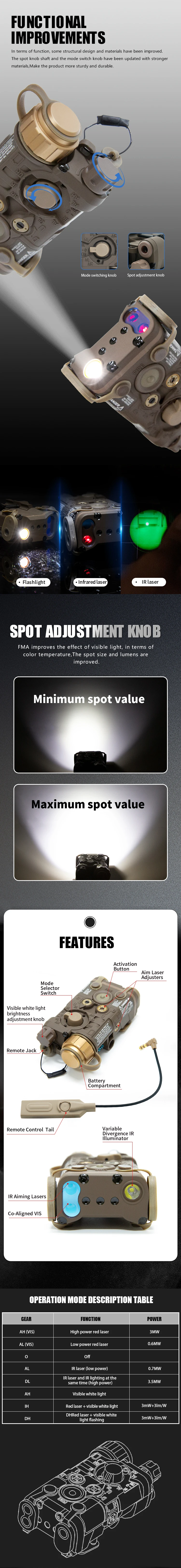 LA-23 LAB PEQ-NGAL versión de nailon láser rojo/láser verde de próxima generación + luz blanca LED con láser IR para equipo de tiro al aire libre