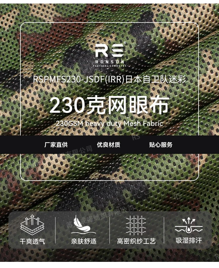 El patrón funcional de marcas de agua y el tejido de protección infrarroja presenta alta resistencia y resistencia al desgarro, así como una alta solidez del color a la luz solar.