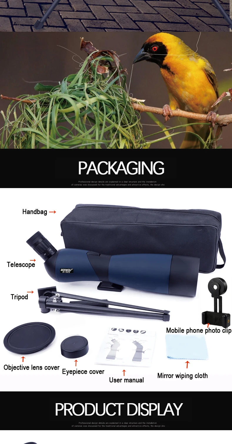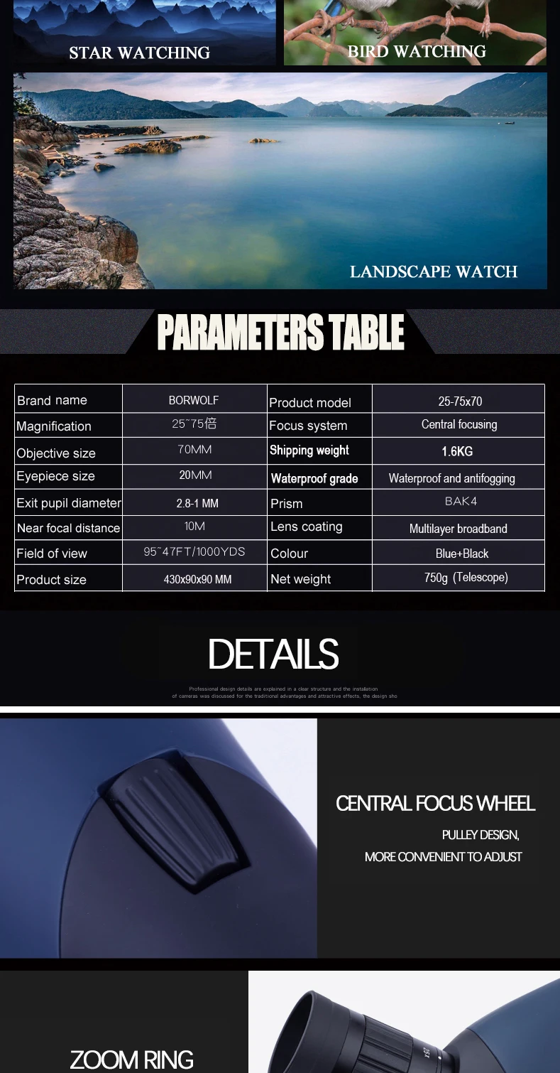 Light weight and easy to carry. Suitable for carrying when you go out to observe, also can be easily put in the car.