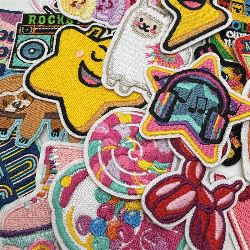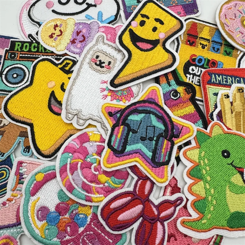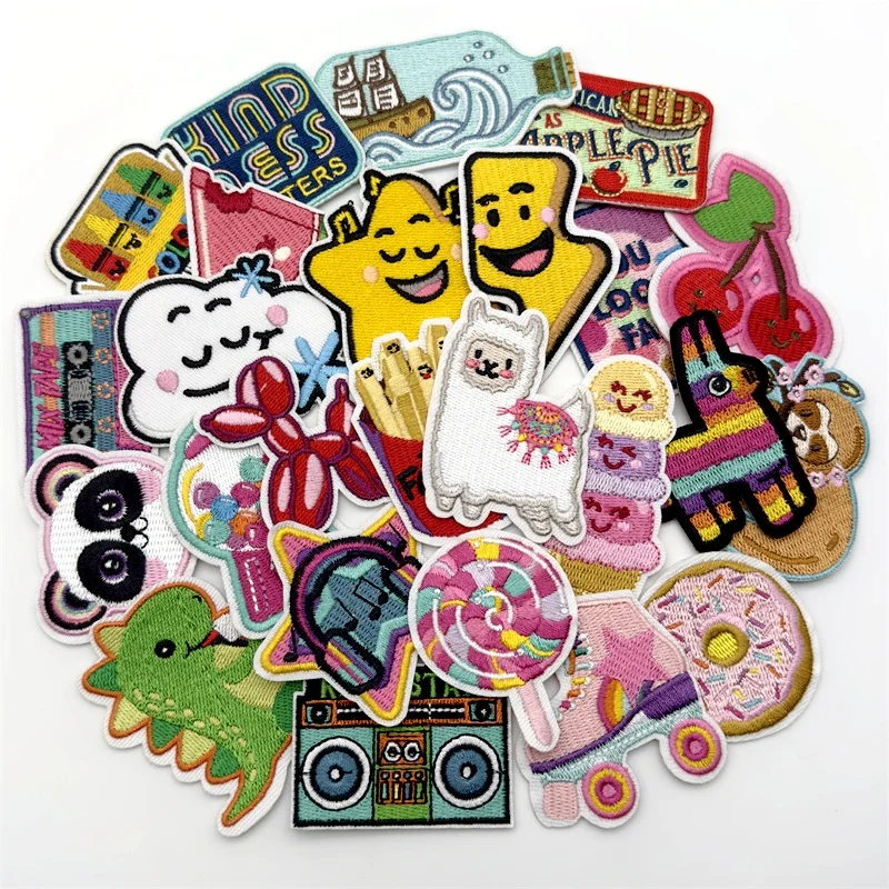 25 unids/lote DIY parches bordados de dibujos animados hierro en parches apliques para ropa parches de rayas pegatinas decoración