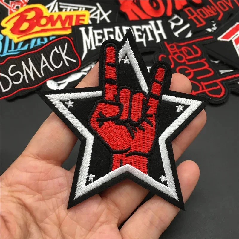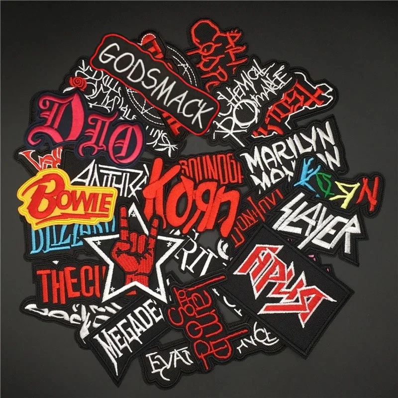 25 unids/lote parches de banda de Rock para ropa bordado rayas parches para planchar insignias musicales Diy pegatinas para ropa costura chaleco chaqueta