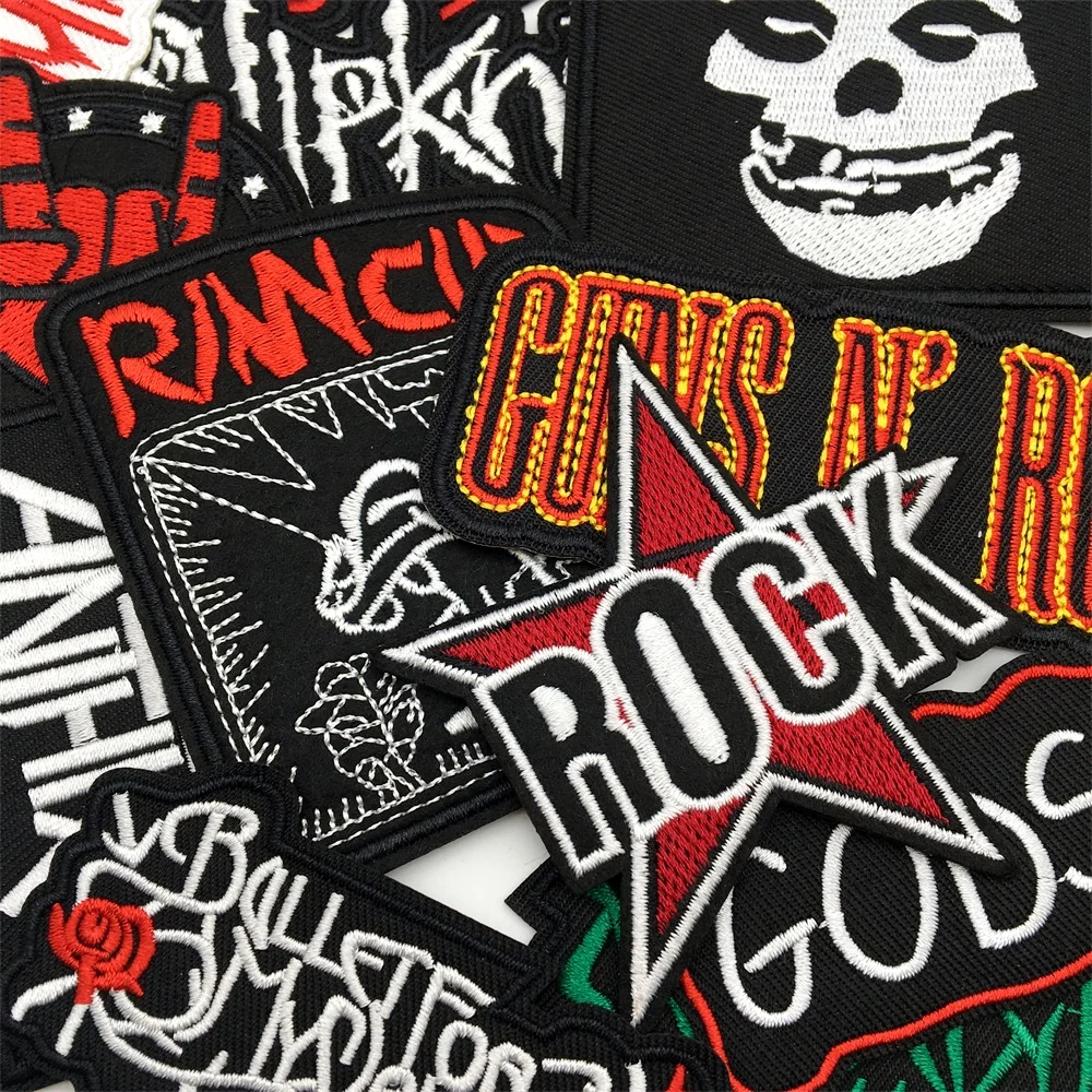 25 unids/lote parches de banda de roca para ropa parches de hierro bordados música DIY ropa rayas pegatinas chaqueta de costura