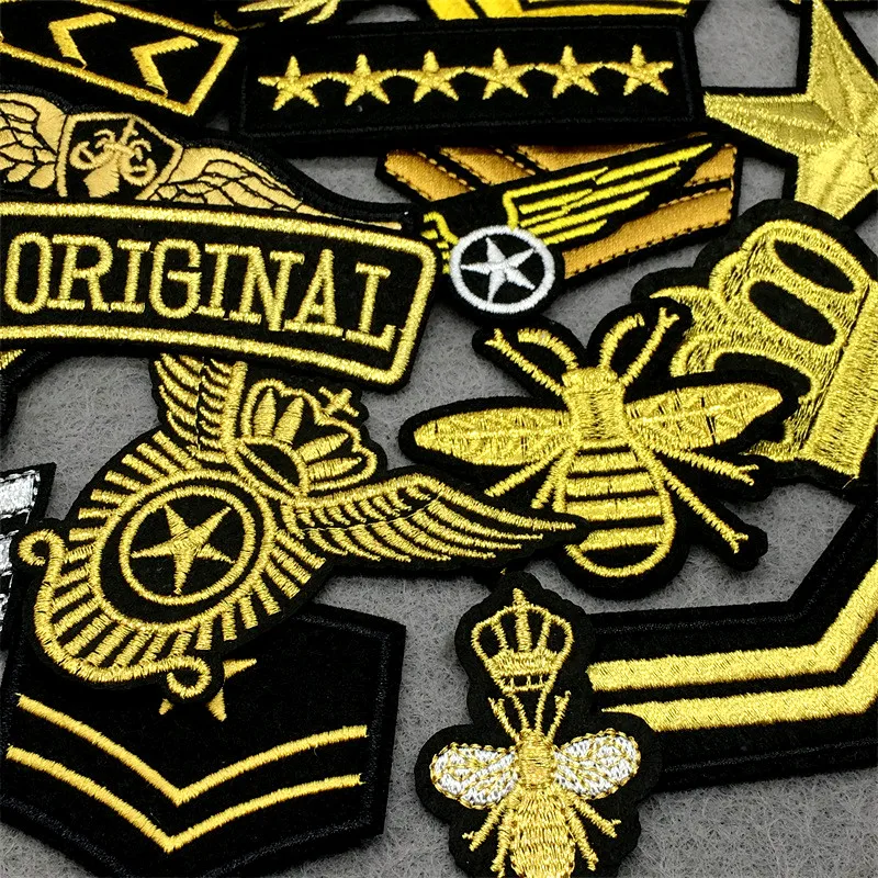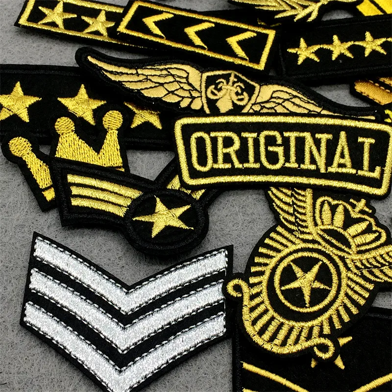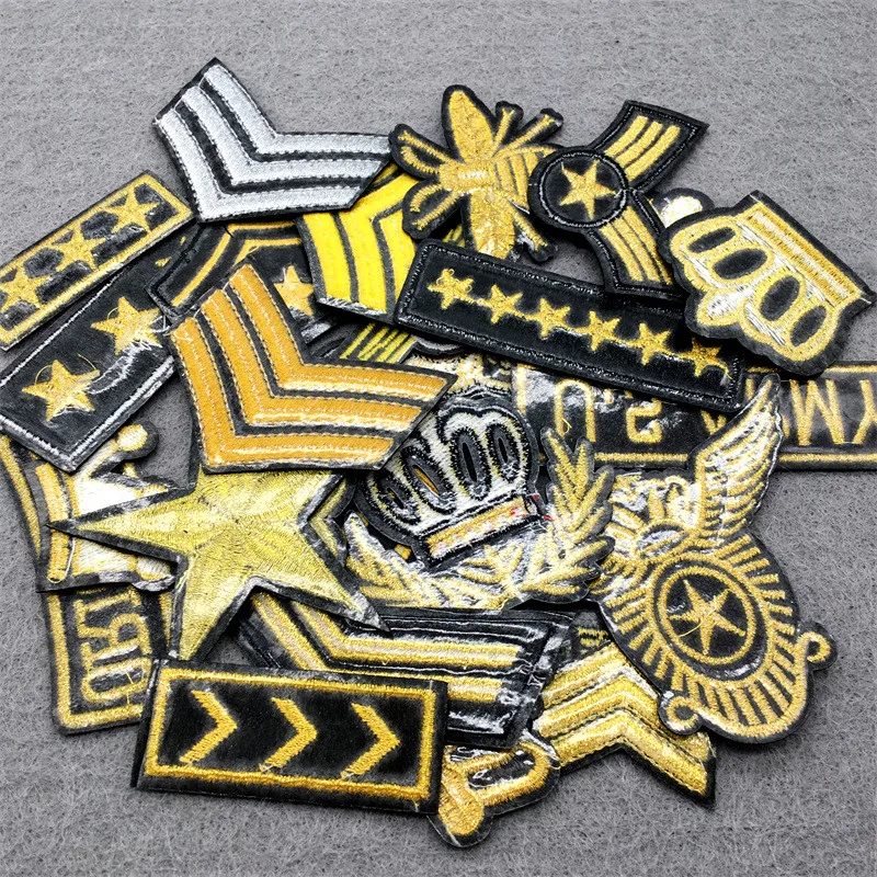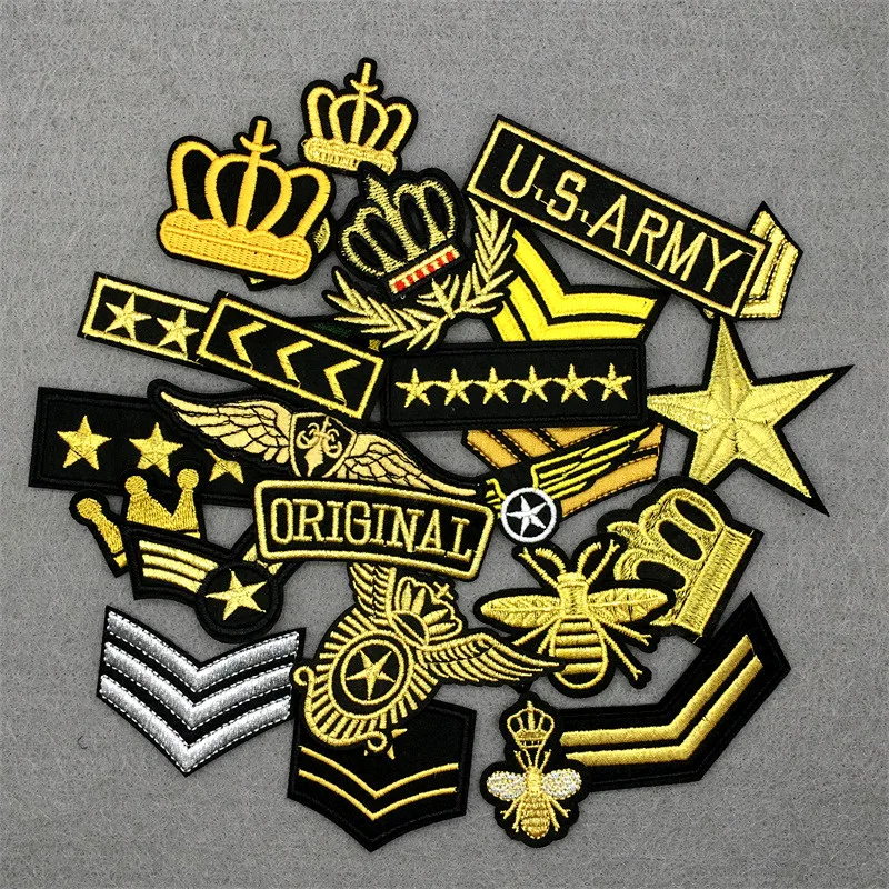 25 unids/lote de parches bordados del ejército de corona en pegatinas para ropa, parches de costura de hierro DIY para apliques de ropa, dorado y plateado