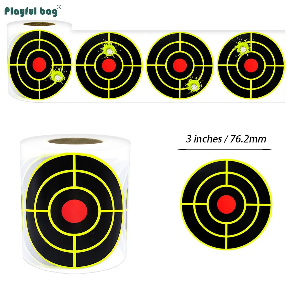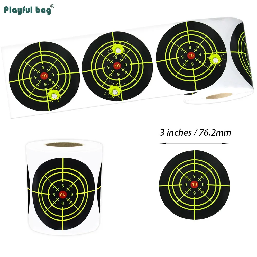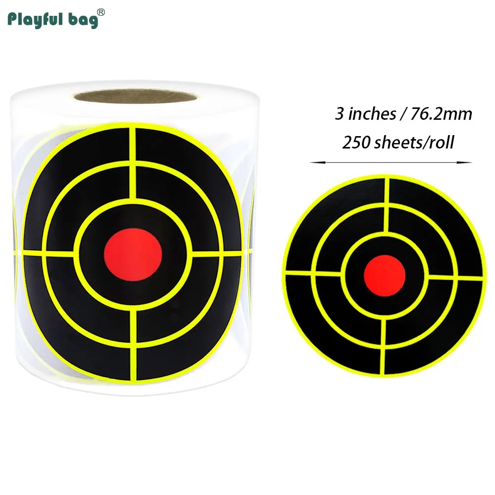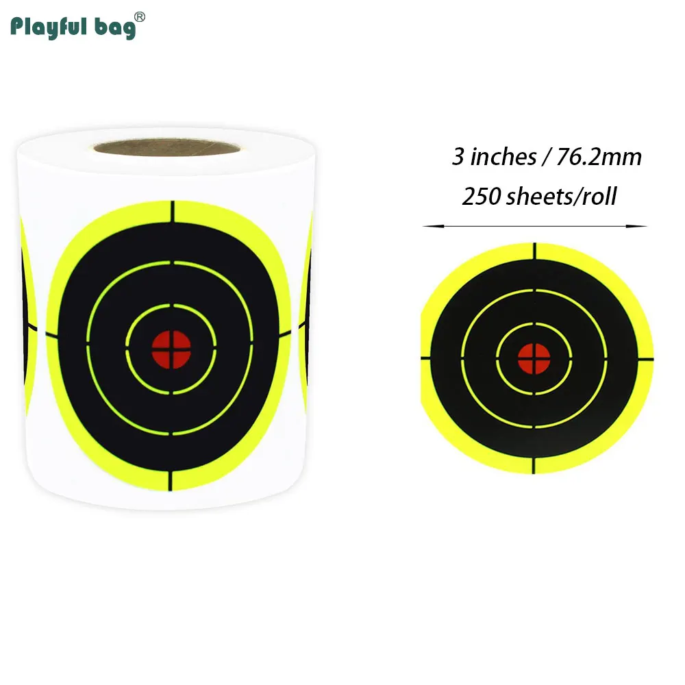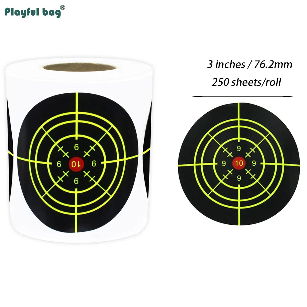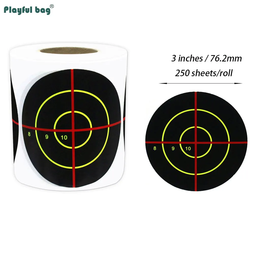 250 uds/rollo de pegatinas de objetivo de salpicaduras de 3 pulgadas, adhesivo de entrenamiento de caza, papel de destino, práctica de tiro Airsoft AQB176