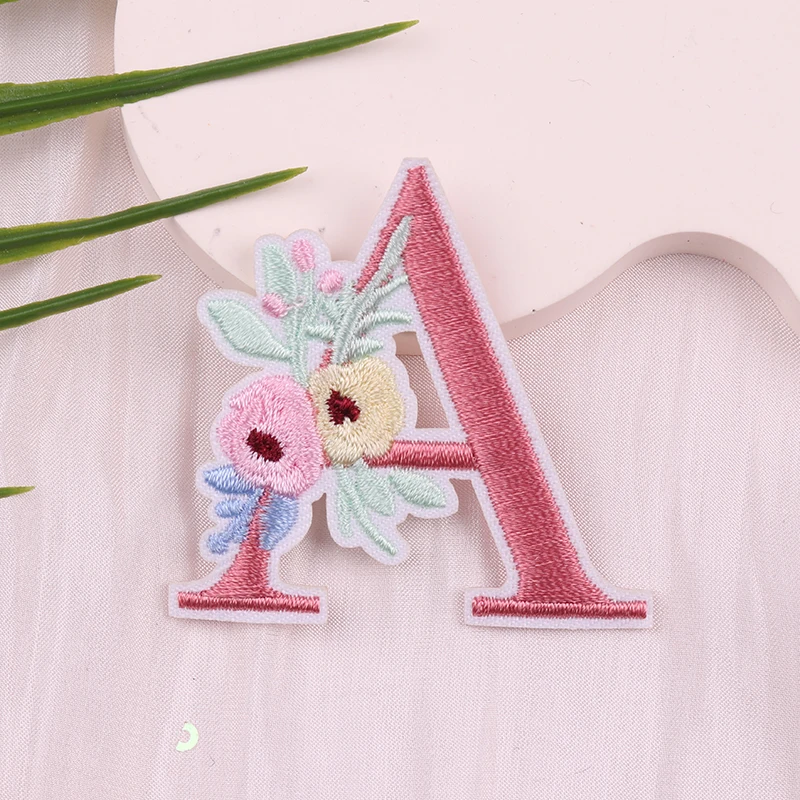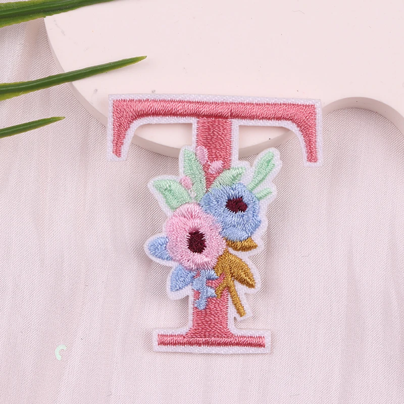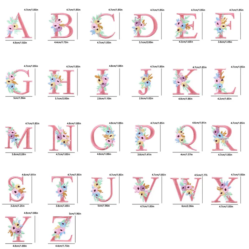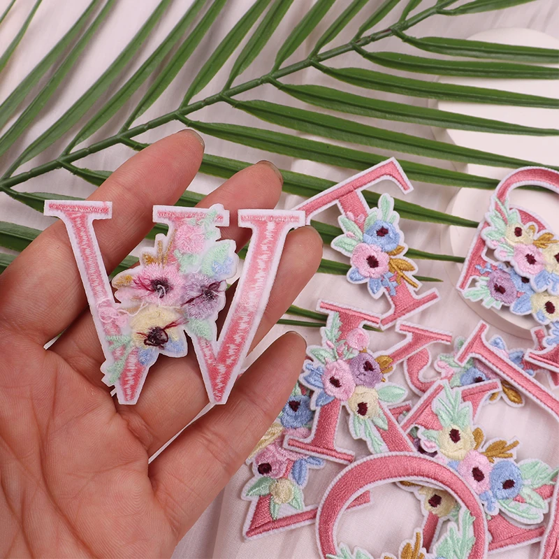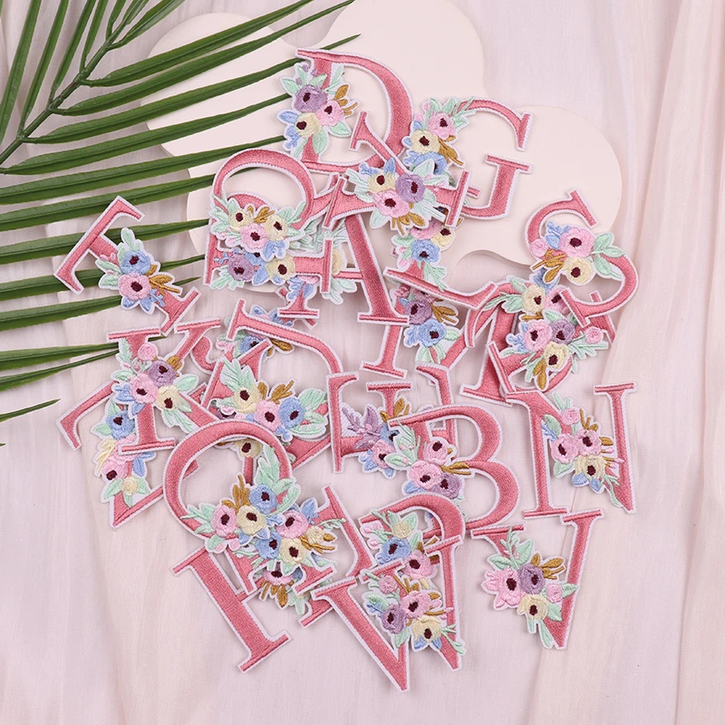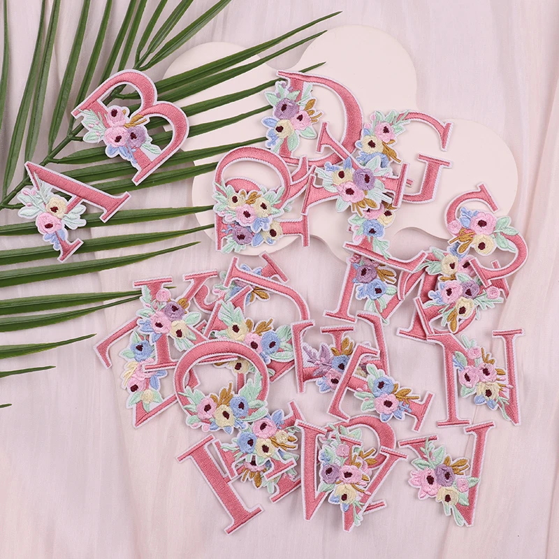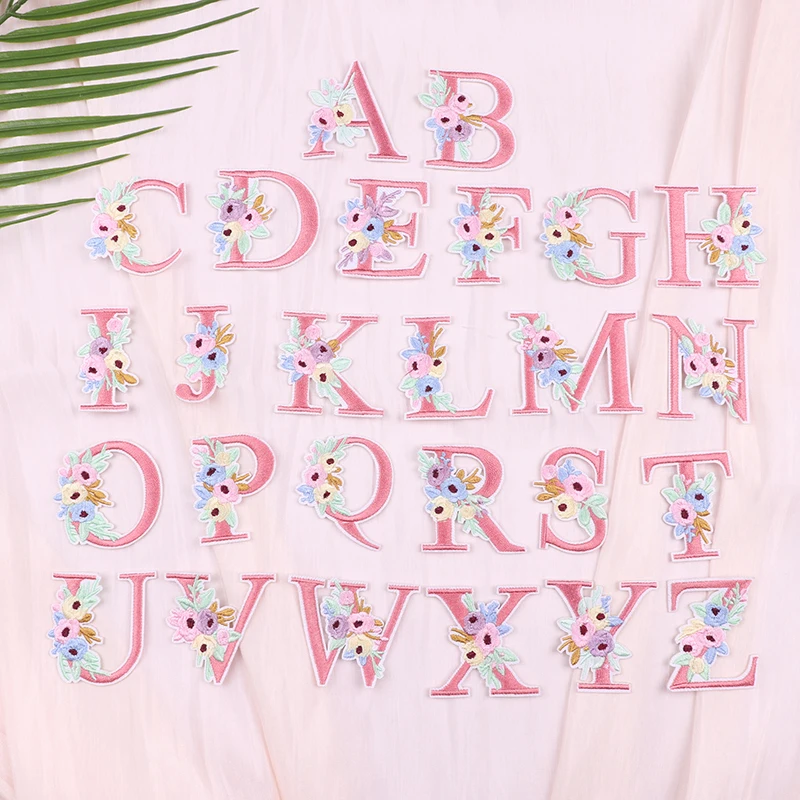 Parche de Flor Rosa con Letras Inglesas para Planchar, Parches Decorativos Bordados para Ropa, Chaquetas, Zapatos, Sombrero, Suéter, Coser, 26 Unidades por Set