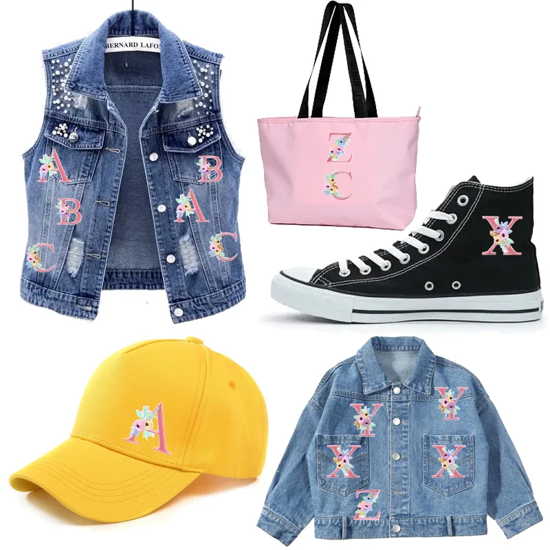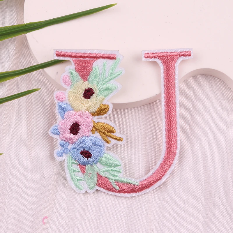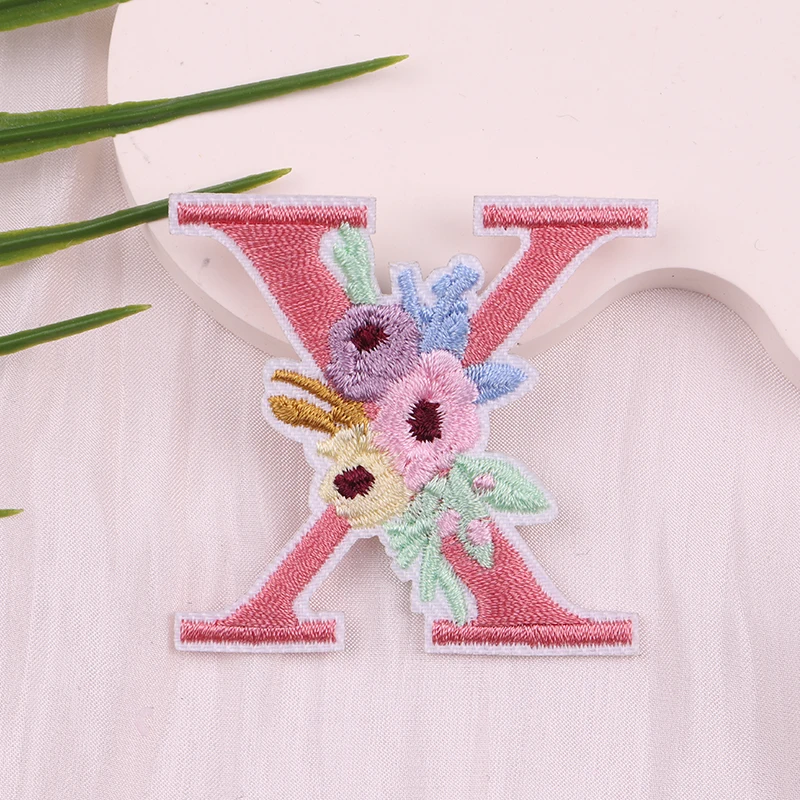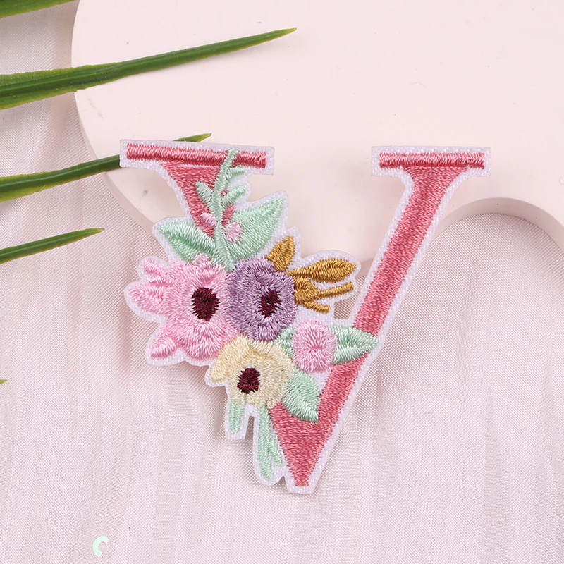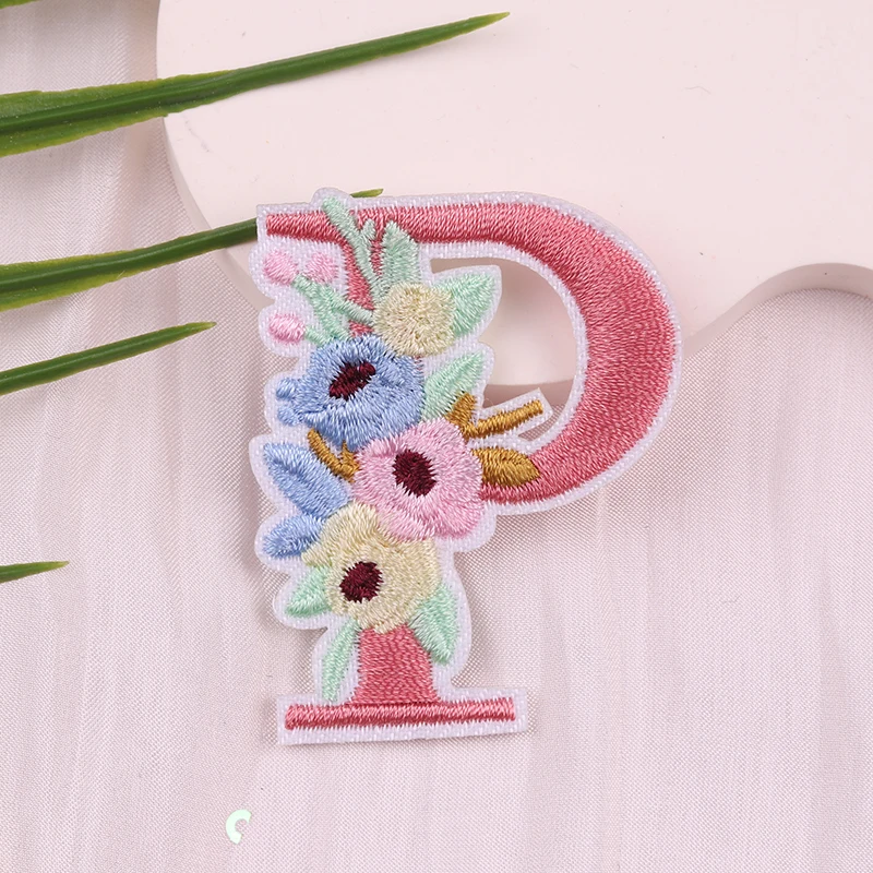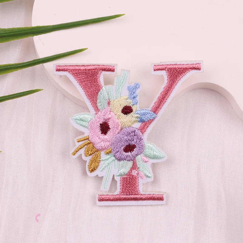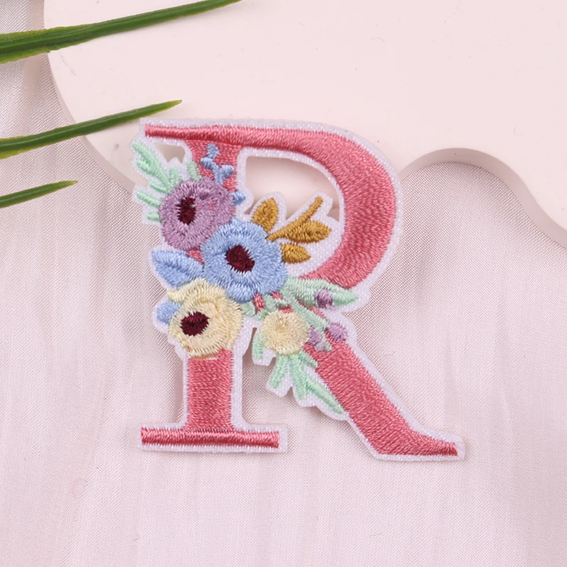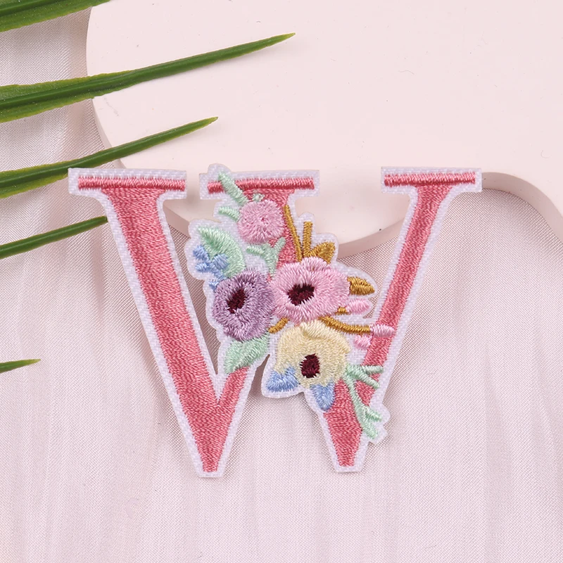 Parche de Flor Rosa con Letras Inglesas para Planchar, Parches Decorativos Bordados para Ropa, Chaquetas, Zapatos, Sombrero, Suéter, Coser, 26 Unidades por Set