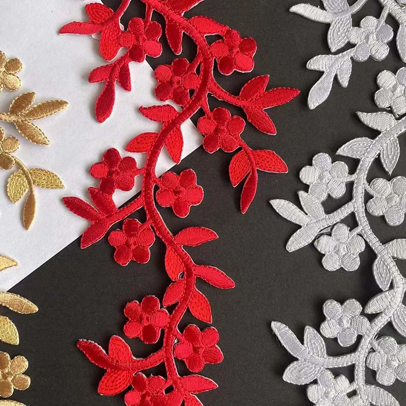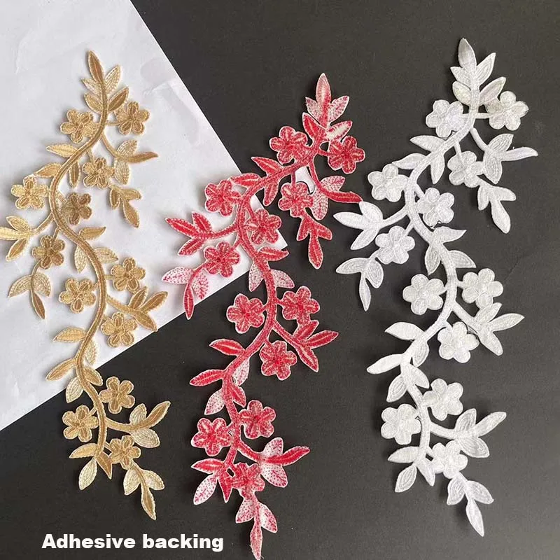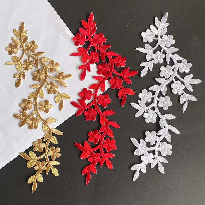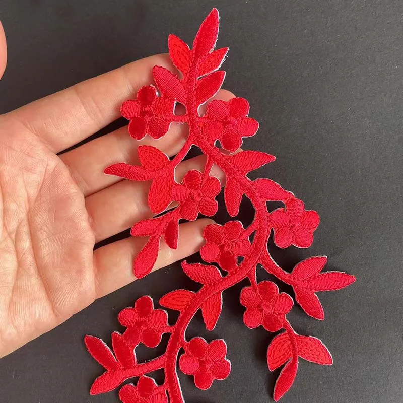26*10 CM/Apliques florales pegatinas para ropa parche termo, flor de ciruelo bordado hierro en parches para ropa, vestido