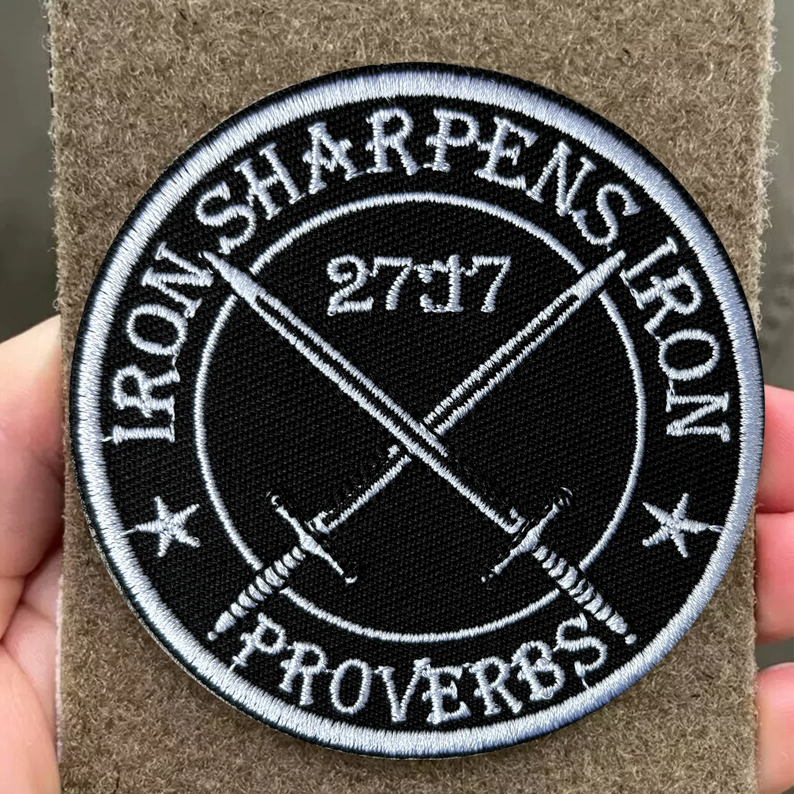 27:17 espadas dobles de la Biblia parche táctico gancho y bucle parches bordados insignia de moral brazalete del ejército militar pegatinas para mochila