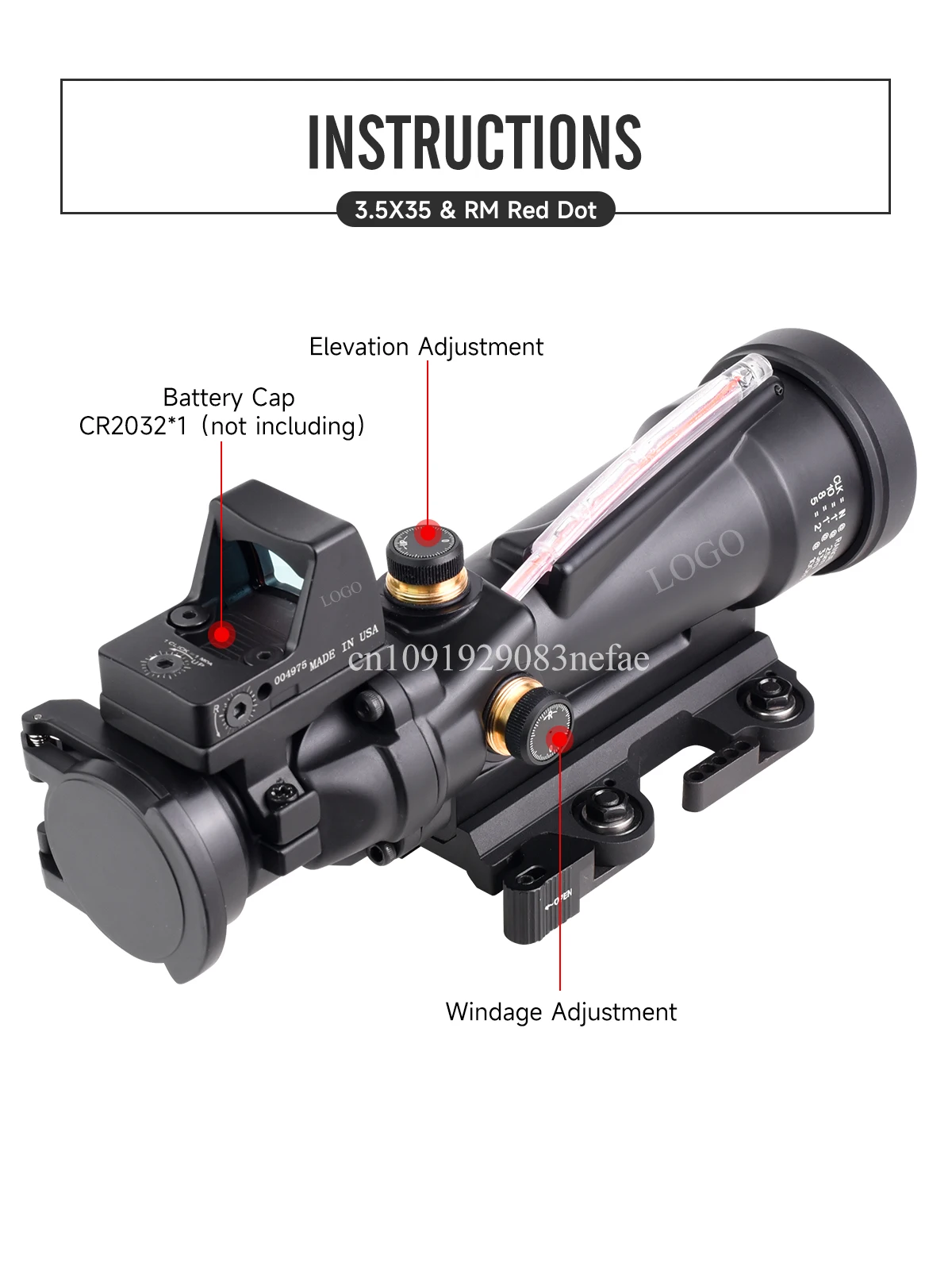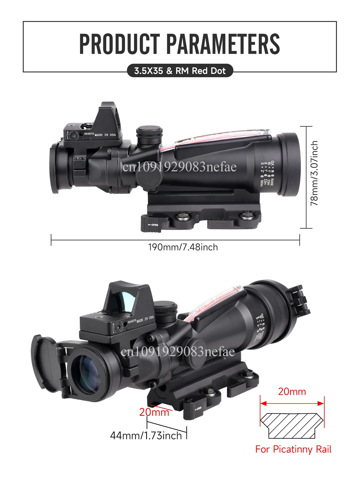 3,5x35 con RM Red Dot Sight Optics semicírculo rojo fibra de vidrio grabado iluminación colimador caza Airsoft Rifle alcance