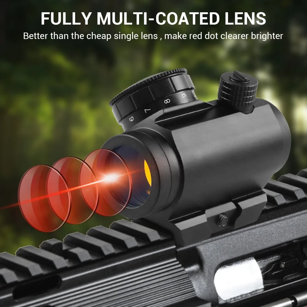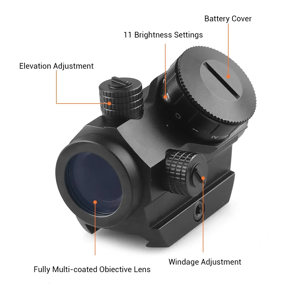 -Different from other sights which use a cheap single lens, the red dot sight uses a high-quality achromatic doublet lens(also fully multi-coated lens), providing superior control for minimizing spherical aberration, reducing internal light loss and glare, ensuring even light transmission, making the red dot clearer and brighter. Allow you to achieve fast target acquisition more easily.