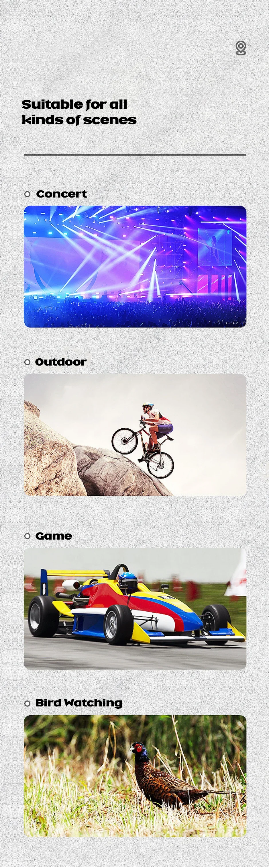 5.Ligero y compacto, bueno para acampar, hacer caminatas, conciertos, observar aves, cazar, viajar, jugar golf y eventos deportivos.