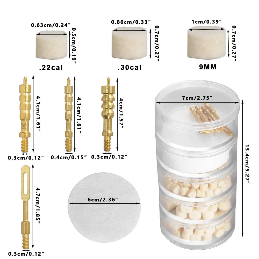 305 Uds Kit de limpieza de pistola herramienta de limpieza de cámara pistola de rifle paño limpio almohadilla de limpieza de cámara limpieza de pistola latón Jag para.22.30 9mm